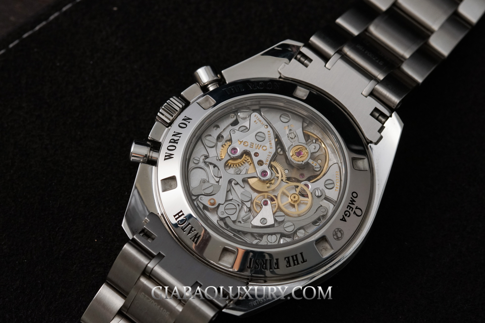 Chiếc Omega Speedmaster mà Gia Bảo Luxury muốn giới thiệu tới các bạn cũng được khắc dòng chữ đó trên mặt đáy. Mẫu đồng hồ này có tên đầy đủ là Speedmaster Moonwatch Professional Chronograph 42mm, với mã hiệu 311.30.42.30.01.006. Đây là một thiết kế truyền thống với bộ máy lên cót tay Caliber 1863, bộ máy đã được sử dụng bởi phi hành gia Buzz Aldrin khi ông đặt chân lên Mặt Trăng (Neil Armstrong là người đầu tiên đặt chân lên mặt trăng, nhưng ông để lại chiếc Omega Speedmaster của mình trên tàu).