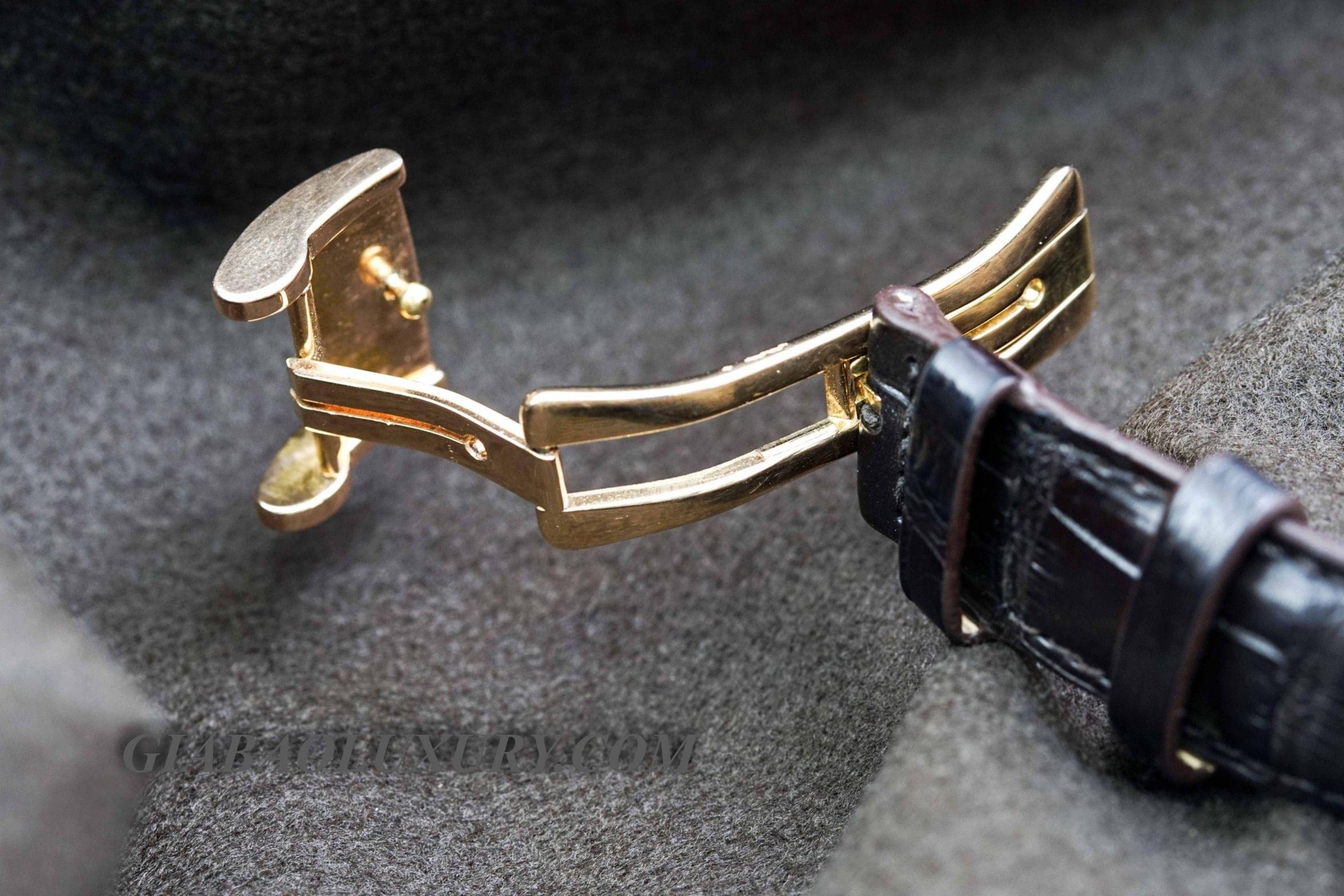 Parmigiani Fleurier sử dụng cho Parmigiani Fleurier Toric Chronograph mã hiệu chất liệu vàng hồng 18K cao quý, chất liệu cơ bản dành cho đồng hồ cổ điển, cho toàn bộ thiết kế mặt số, vòng bezel, càng và bộ khóa. Đi cùng vàng hồng 18K vẫn là “người bạn” dây đeo tay da cá sấu nâu, sự kết hợp mang đến dáng vẻ thanh lịch, tao nhã cho cỗ máy thời gian độc đáo này.