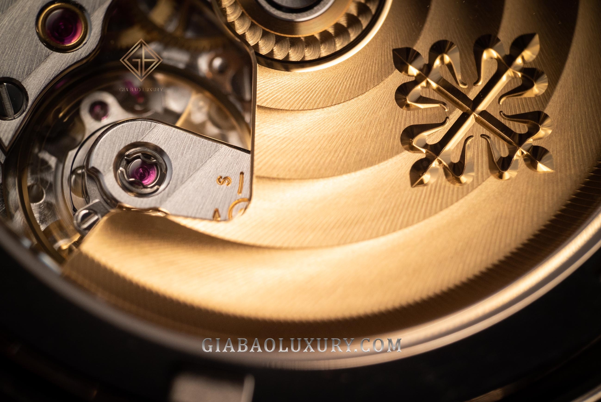Thông qua mặt kính sapphire trong suốt, thay thế nắp kín ở mặt sau, người xem có thể dễ dàng chiêm ngưỡng vẻ đẹp tinh tế của bộ máy này. Mặc dù bị che lấp một phần bởi rotor bằng vàng khối nhưng những chi tiết được hoàn thiện cực kỳ đẹp mắt như đường viền vát cạnh, đánh bóng, vân Côtes de Genève cùng những đinh ốc nhỏ bề mặt sáng bóng như đang khoe sắc.