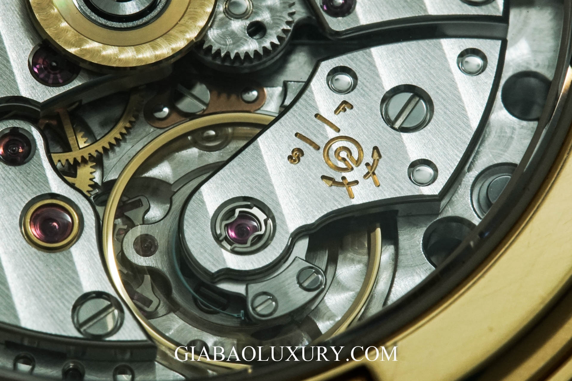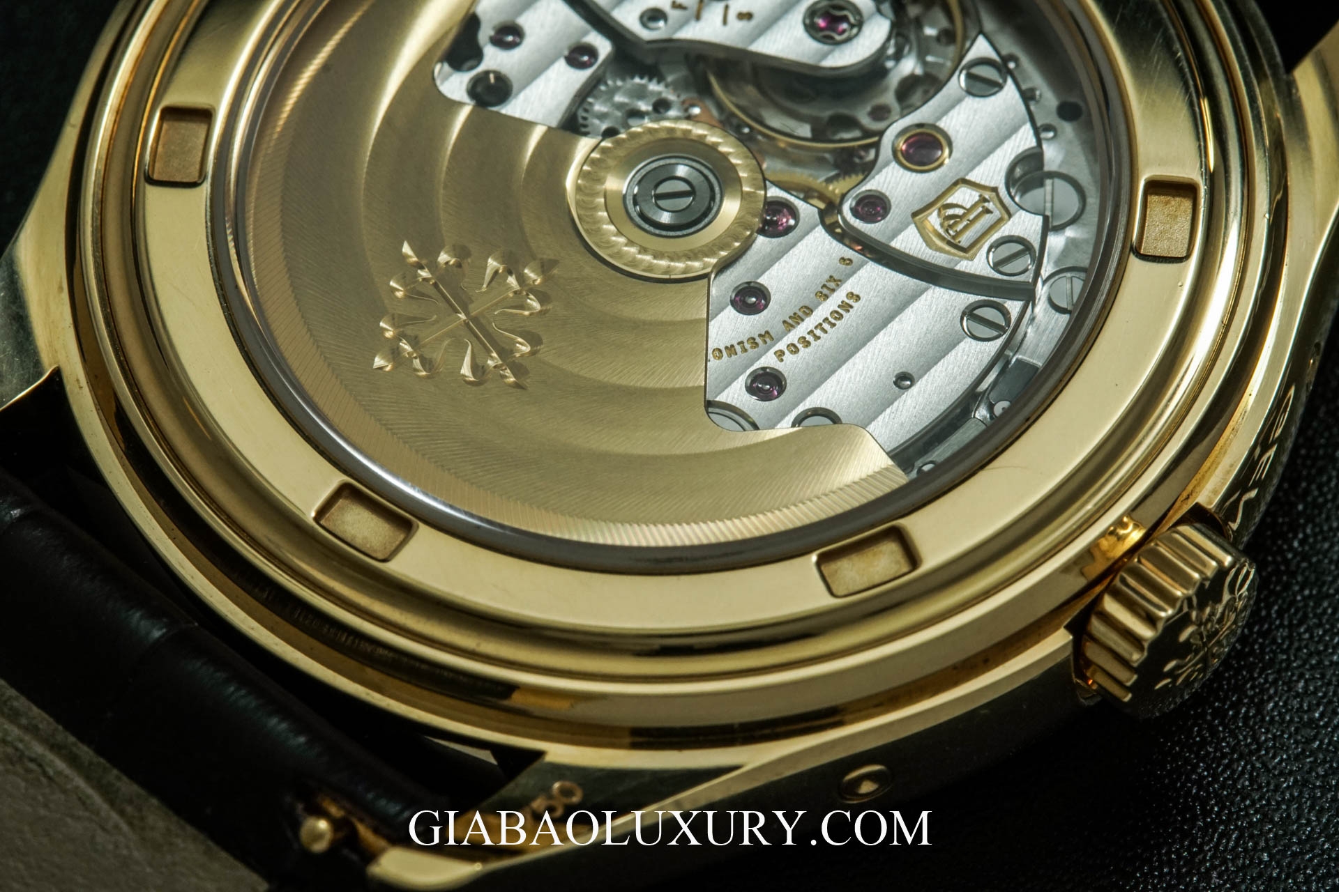 Để làm được điều đó, 5146J cần được cung cấp năng lượng bởi bộ máy tự động mang tên 324 S IRM QA LU. Bộ máy này có thể được quan sát ngay đằng sau nắp lưng của 5146J thông qua mặt kính sapphire trong suốt. Mặc dù bị che lấp một phần bởi rotor bằng vàng khối, nhưng những chi tiết được hoàn thiện đẹp mắt như đường viền vát cạnh, đánh bóng, vân côtes de Genève, những đinh ốc nhỏ sáng bóng bề mặt cũng dễ dàng khoe sắc. Bộ máy 324 S IRM QA LU với vẻ ngoài hoàn thiện có thể vận hành chính xác trong vòng 48 giờ đồng hồ với tần số hoạt động là 21,600 vph.