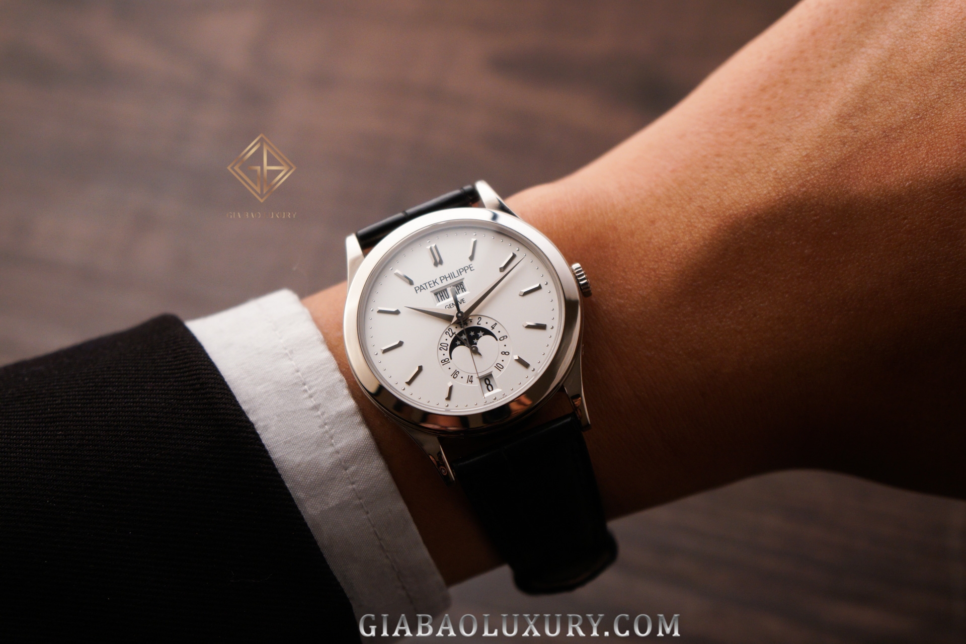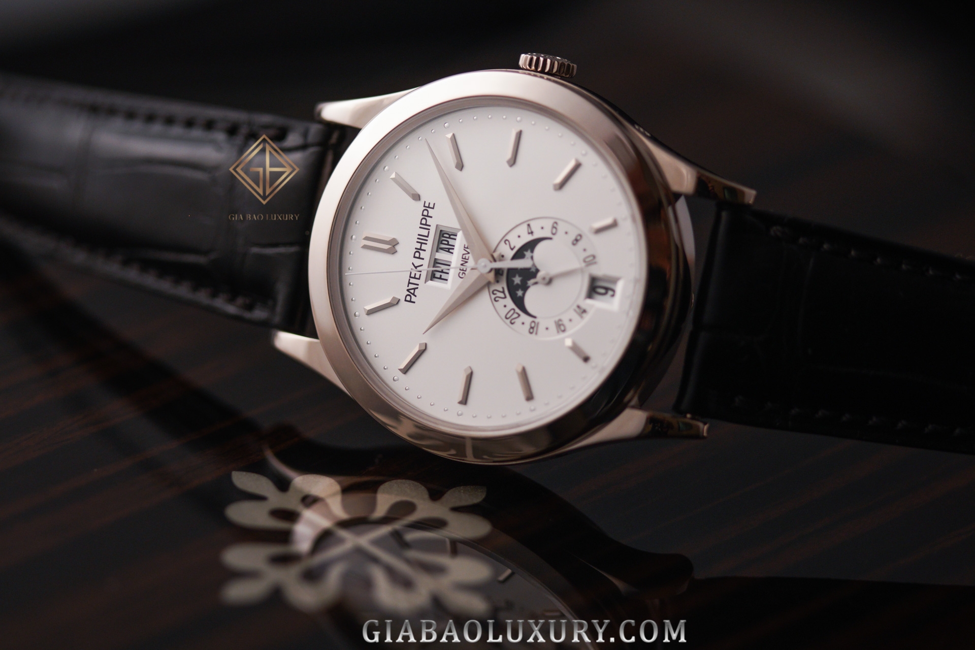 Hiện trên website của hãng có tới ba phiên bản ref. 5396. Nếu phiên bản ref. 5396R-015 trở nên hiện đại hơn nhờ mặt số xanh, phiên bản 5396R-011 phảng phất hương vị cổ điển do chất liệu vàng hồng đem lại, thì ref. 5396G-011 có mặt tại Gia Bảo lại mang vẻ đẹp trung tính. Một nét đẹp không quá hiện đại từ chất liệu vàng trắng, nhưng vẫn cổ điển từ mặt số màu trắng truyền thống.
