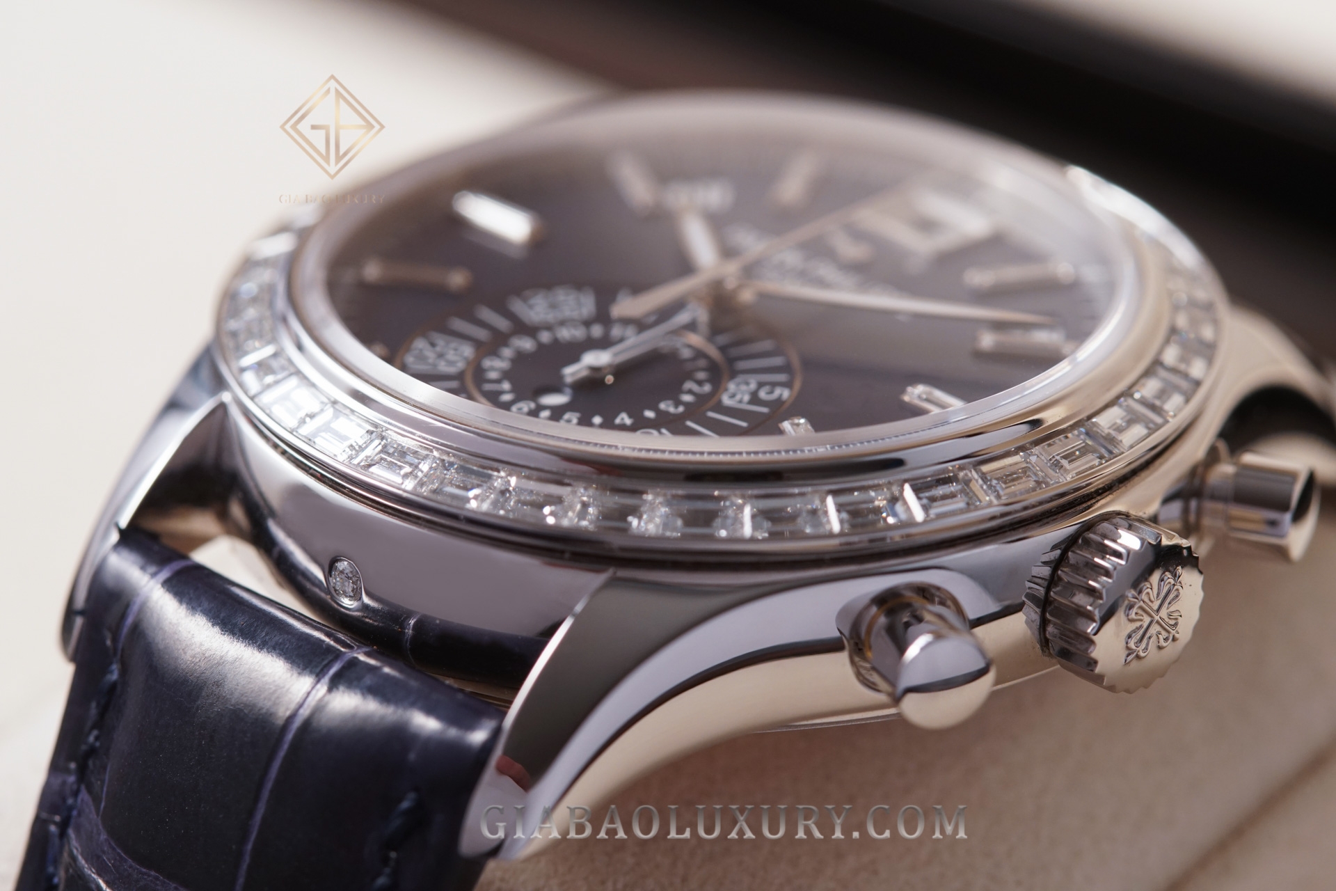 Vào tháng 1 năm 1839, Antoine Norbert de Patek đã đặt nền móng đầu tiên cho thương hiệu Patek Philippe phát triển rực rỡ sau này. Đến nay, những chiếc đồng hồ có gán mác Patek Philippe được xem là đại diện cho sự cao cấp, chất lượng cùng thiết kế luôn có thể chiều lòng những khách hàng khó tính nhất. Tại Patek Philippe, khách hàng có thể tìm thấy tất cả các dòng đồng hồ từ ba kim đơn giản trong bộ sưu tập Calatrava, đến các chức năng phức tạp hơn trong bộ sưu tập Complications. Thuộc bộ sưu tập Complications, phiên bản đồng hồ Patek Philippe 5961P tại Gia Bảo Luxury ngoài sự phức tạp còn được tăng thêm sự sang trọng nhờ hệ thống kim cương dạng ống xếp đều trên vành bezel.