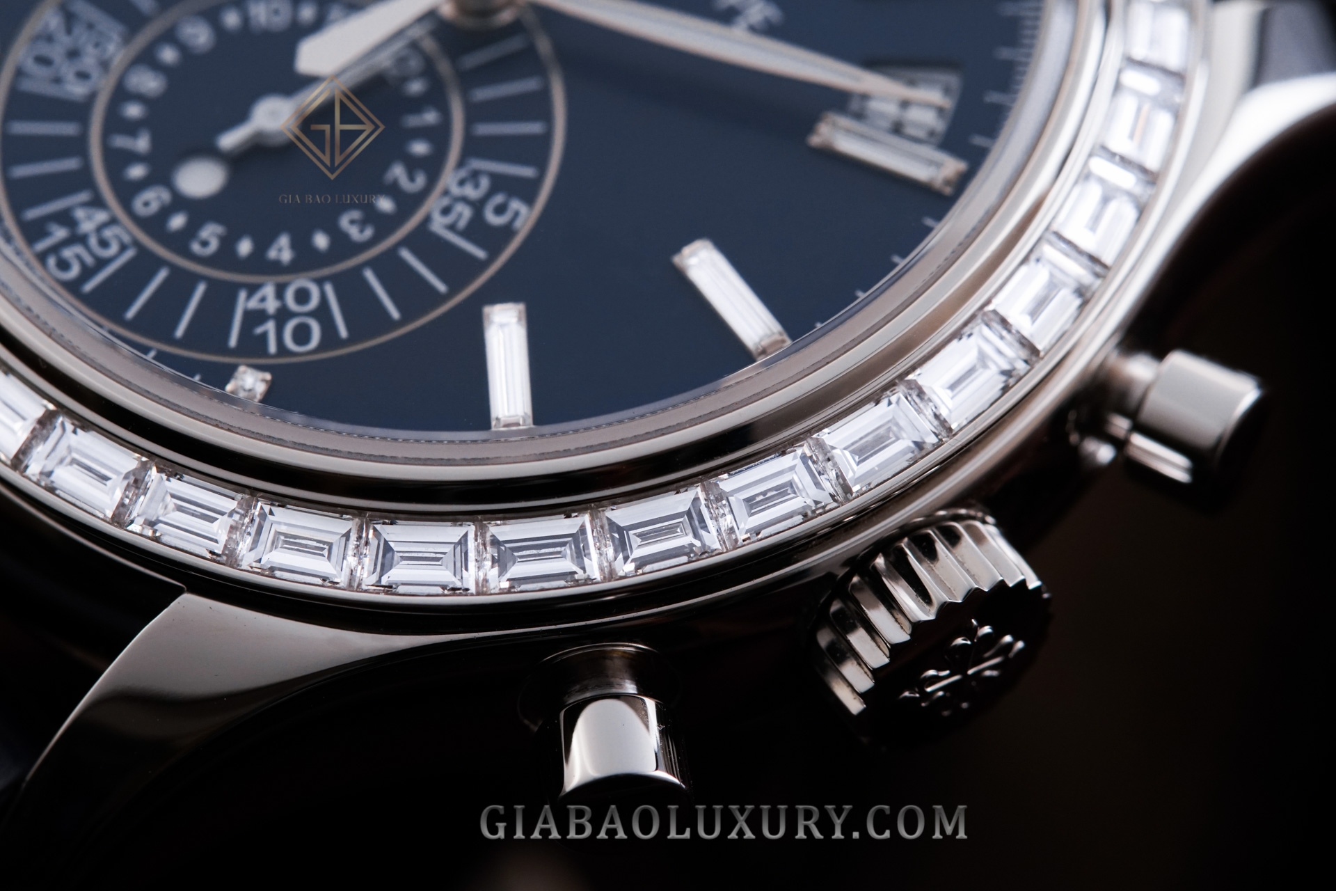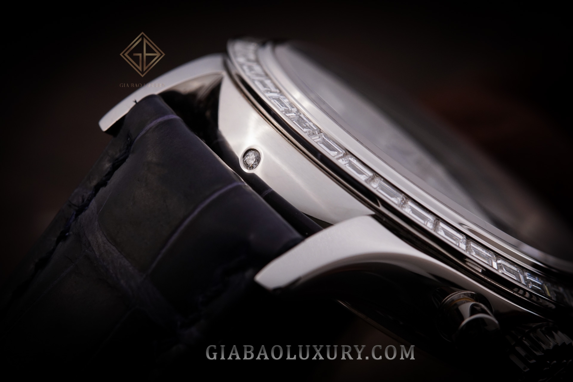 Với sự hiếm có khi khai thác, theo một lẽ dĩ nhiên, nếu cùng một dòng đồng hồ, phiên bản đồng hồ platinum sẽ có mức giá cao hơn là đồng hồ vàng. Quyết định sự đắt đỏ của phiên bản đồng hồ Patek Philippe Complications 5961P không chỉ là bộ vỏ platinum, không chỉ là bộ máy ấn tượng bên trong mà còn là do những viên kim cương mà thương hiệu này đã sử dụng.