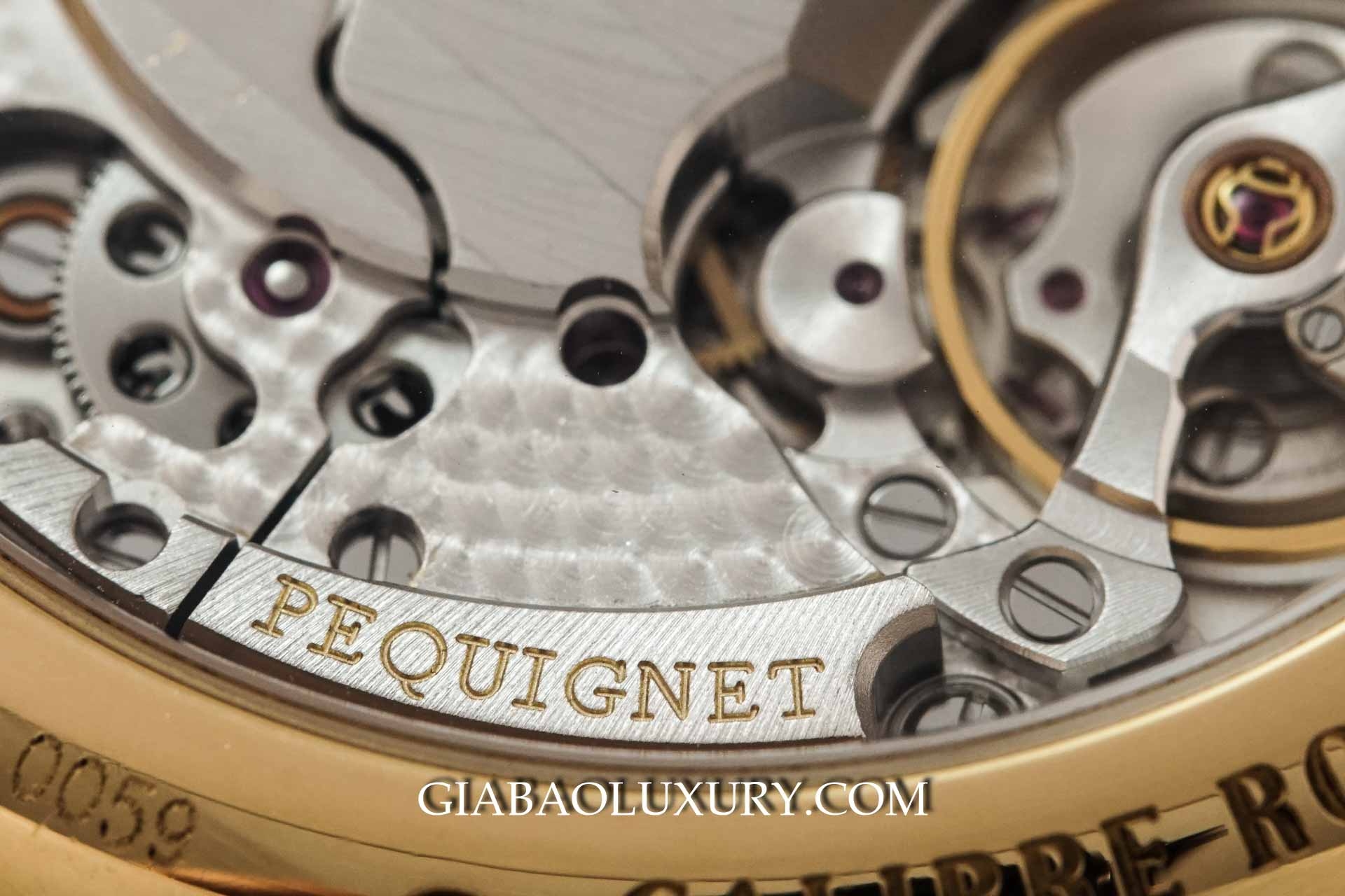 Pequignet Rue Royale Moonphase nằm trong bộ sưu tập Manufacture của hãng. Khác với bộ sưu tập Moorea xuất hiện từ thời đầu thành lập vốn sử dụng máy bên ngoài, những cỗ máy thời gian trong bộ sưu tập Manufacture lại chỉ được trang bị bộ máy in-house, được sản xuất riêng tại nhà máy Haute Horlogerie của hãng. Bộ máy in-house Calibre Royal đầu tiên của Pequignet ra đời vào năm 2011, là niềm tự hào to lớn của nhà sản xuất Pequignet với việc cấu thành của 318 chi tiết và có 8 bằng sáng chế quốc tế.