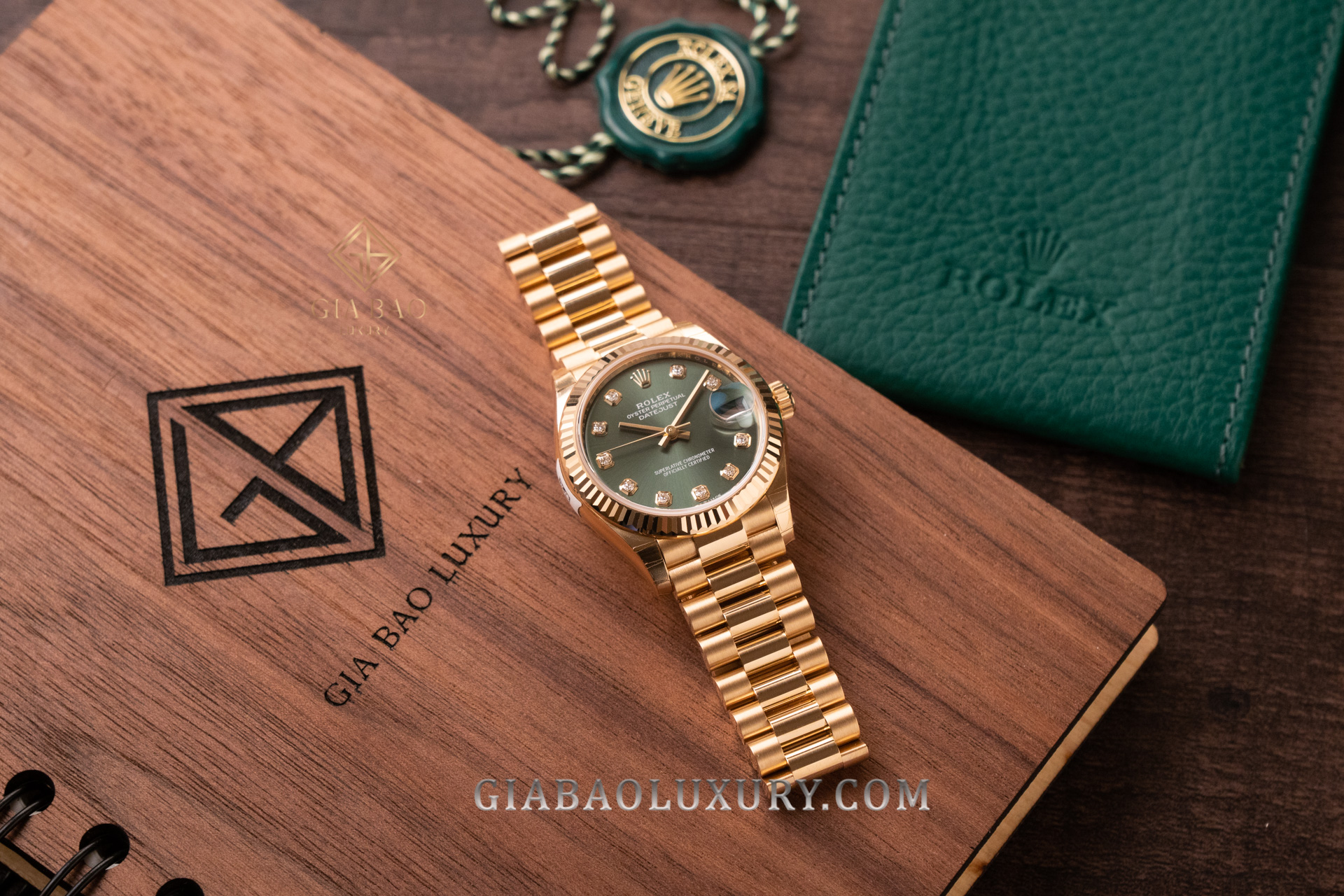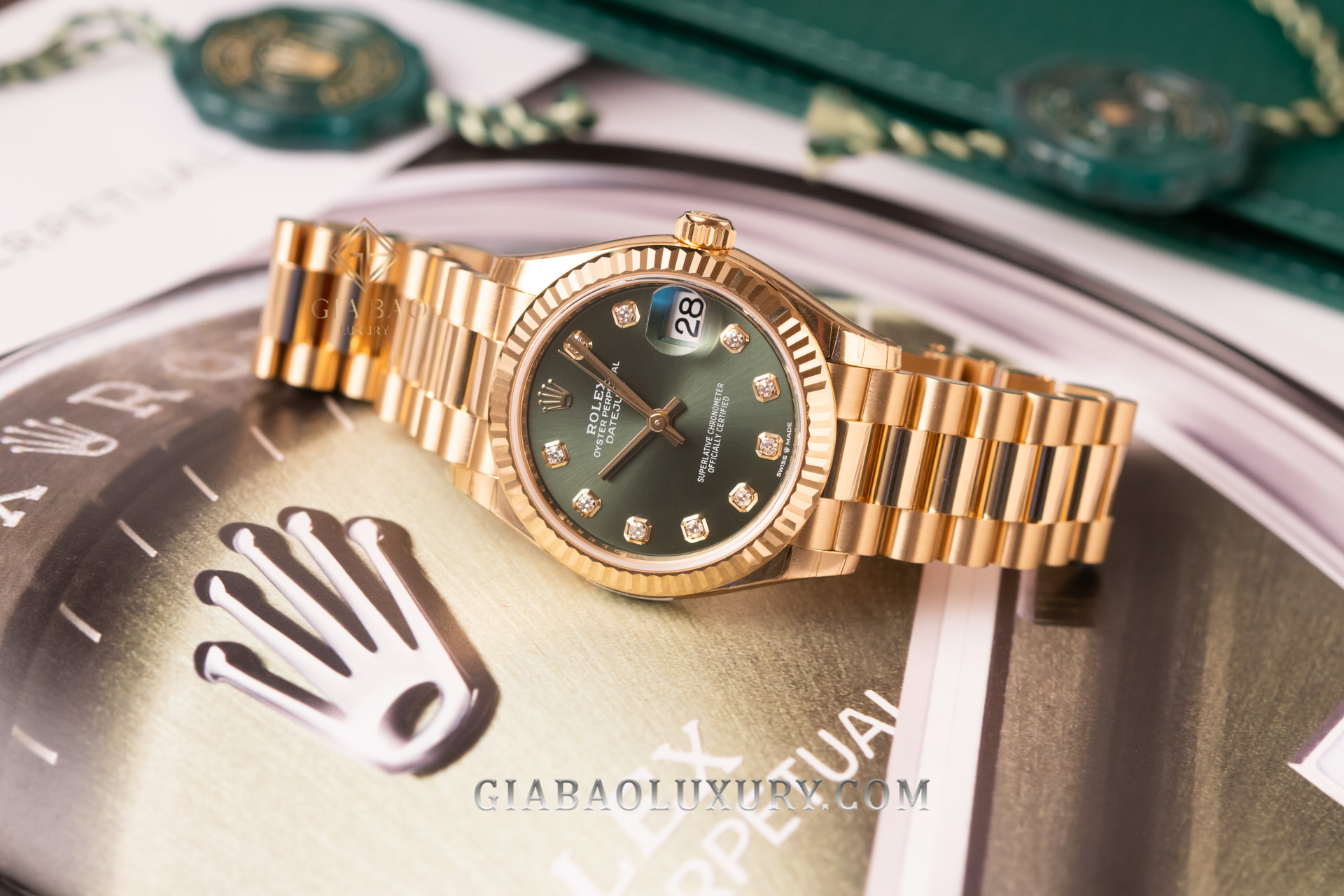 Review đồng hồ Rolex Datejust 278278 Mặt Số Oliu Xanh Nạm Kim Cương