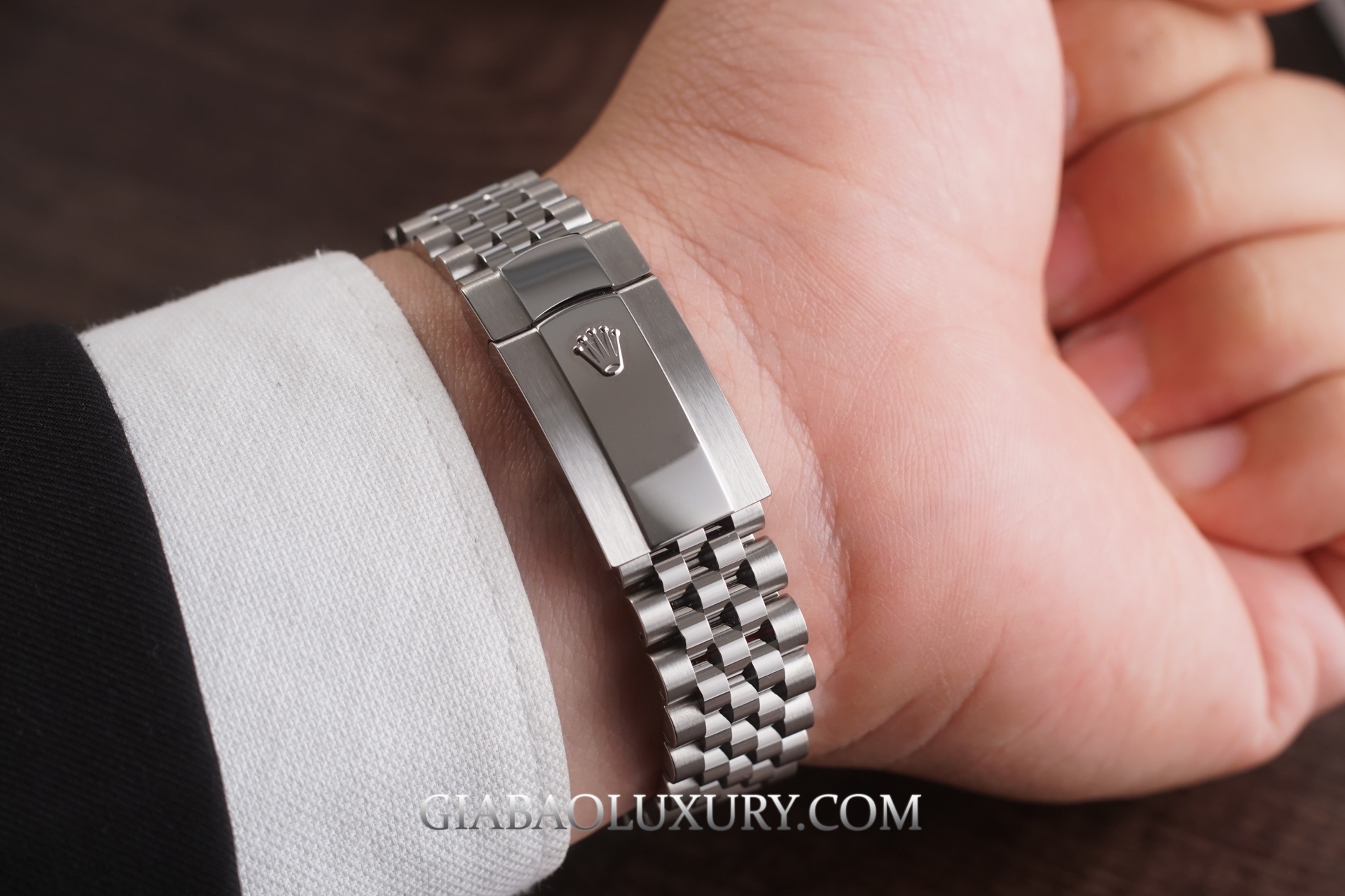 Mẫu đồng hồ Datejust 126234 xuất hiện trong bộ vỏ khung Oyster vặn chặt nhà Rolex. Một bộ vỏ khung biểu tượng đã được Rolex sử dụng từ năm 1926, đến nay đã được thay đổi khá nhiều cho phù hợp với thẩm mỹ đương thời cũng như đảm bảo sự chắc chắn. Vẫn chống nước ở độ sâu 100m, bộ vỏ đồng hồ cùng dây đeo đều được làm từ thép không gỉ, riêng vành bezel lại được làm từ vàng trắng. Nhìn chung, với sự hoàn thiện độc đáo cùng công thức chế tạo vật liệu độc quyền của riêng Rolex, sẽ rất khó để nhận biết rạch ròi giữa hai chất liệu này nếu chỉ nhìn lướt qua.