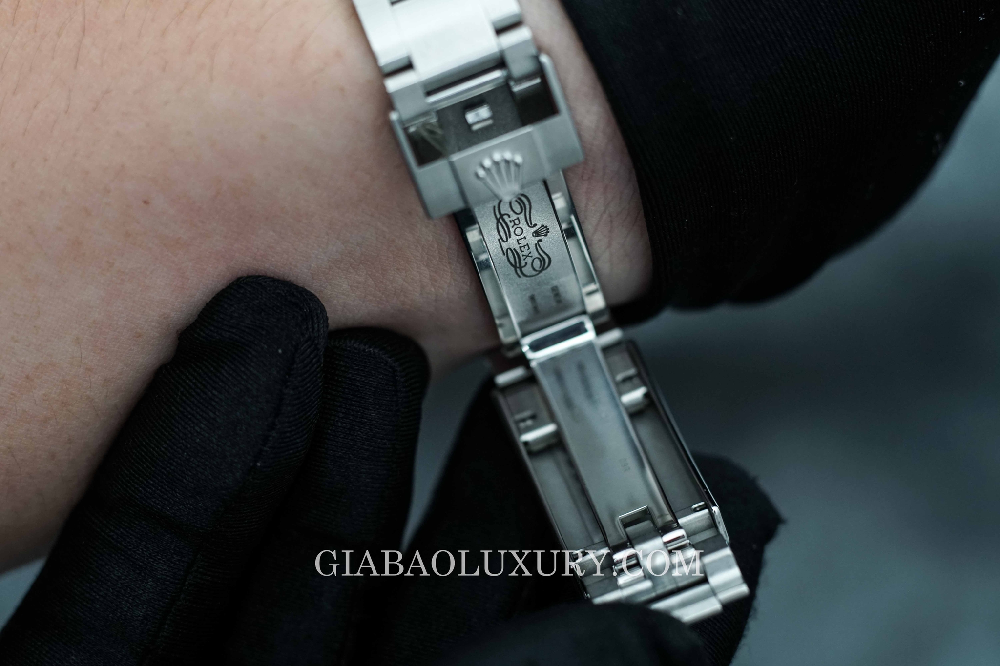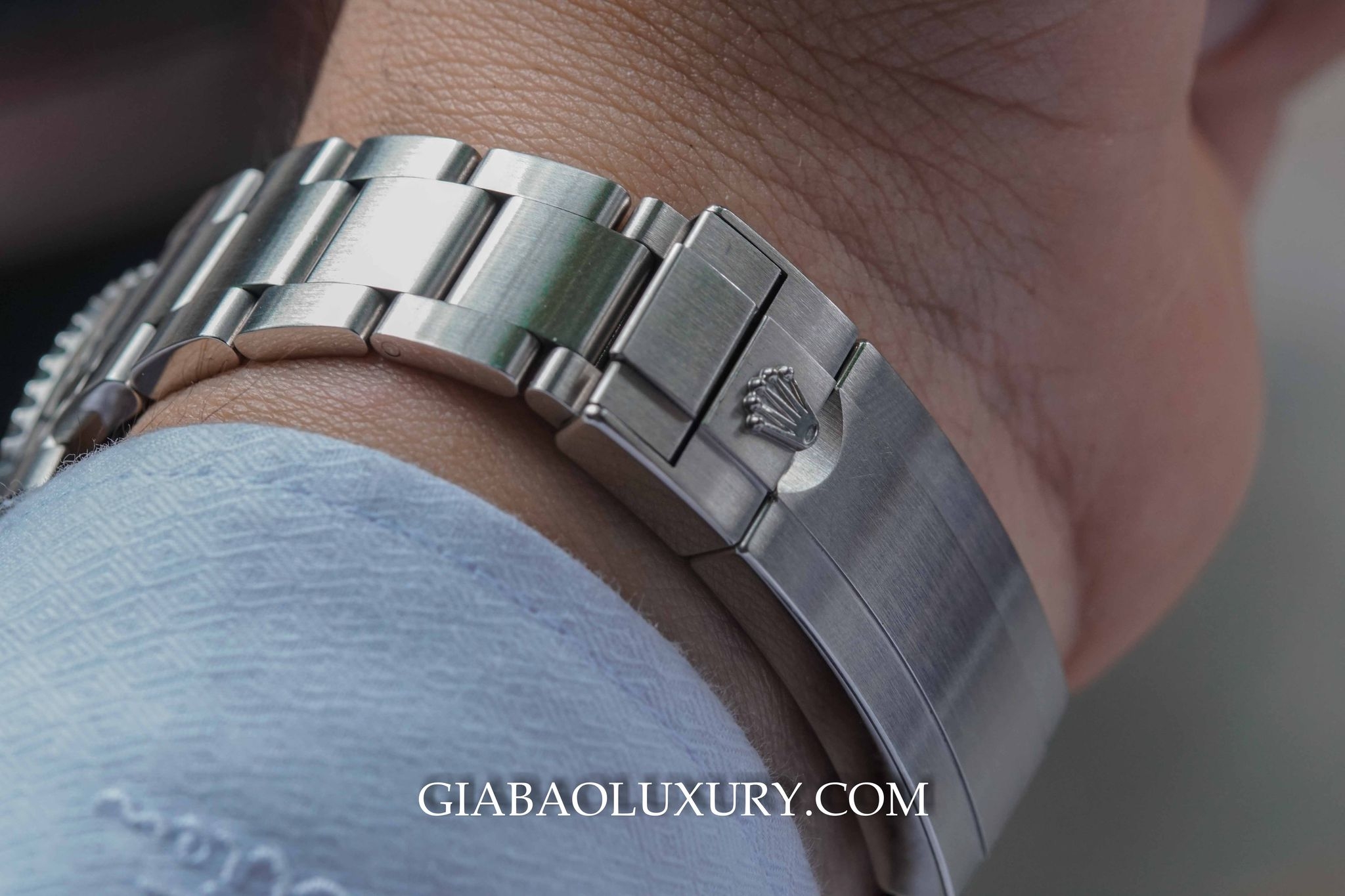 Phần dây có cấu trúc cực kỳ chắc chắn và được hoàn thiện cùng bộ khoá Oysterlock, ngăn việc khoá mở ra bất ngờ khi có va chạm. Cùng với đó là hệ thống Glidelock cho phép người dùng có thể dễ dàng chỉnh độ rộng dây đeo cho phù hợp với cổ tay. Núm chỉnh đồng hồ phía tay phải của vành Bezel cho phép người sử dụng kích hoạt tính năng chống nước mỗi khi nhấn vào.