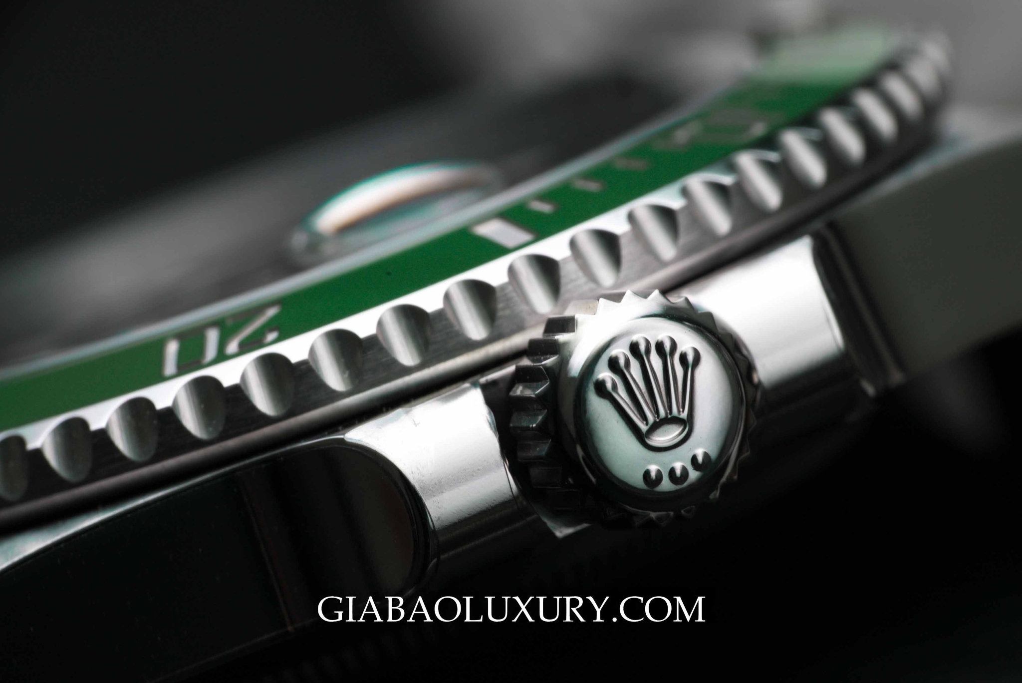 Tuy nhiên, điểm đặc biệt nhất ở chiếc đồng hồ này có lẽ phải kể đến vành Bezel màu xanh lá cây sẫm. Về mặt chức năng, vành Bezel của Submariner dùng để tính khoảng thời gian còn lại trong mỗi lần lặn. Rolex thiết kế vành bezel chỉ xoay được một chiều để tránh việc vành bezel bị xoay ngoài ý muốn nếu có va chạm.