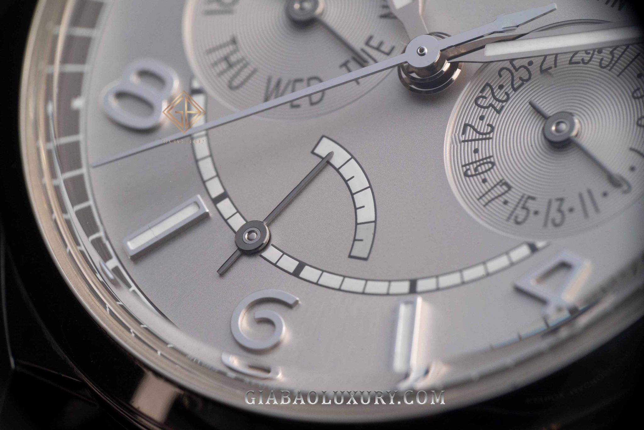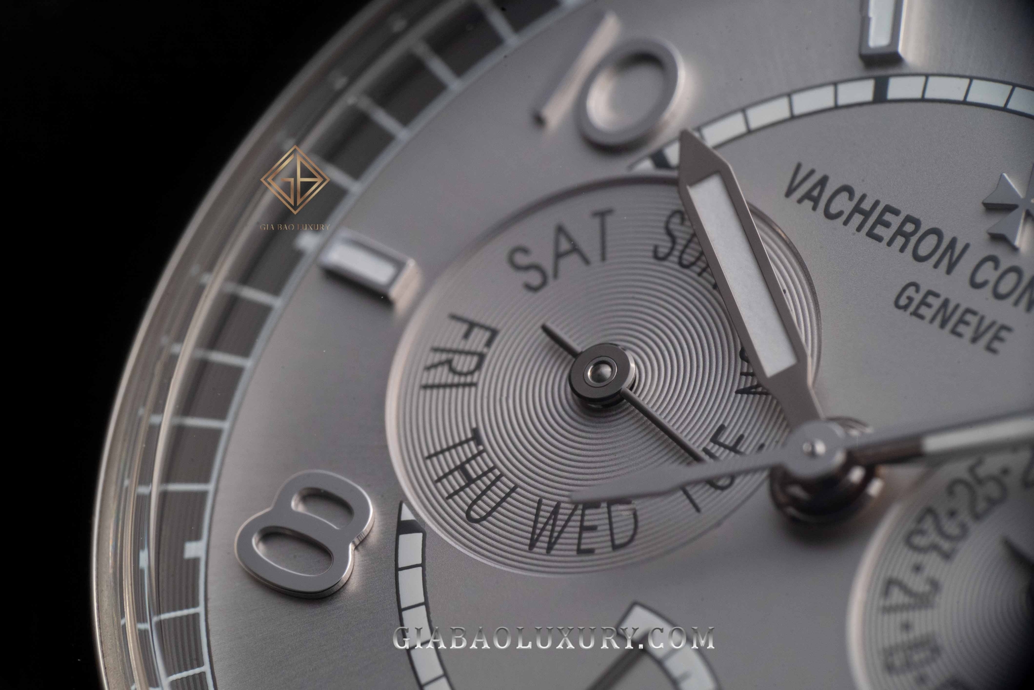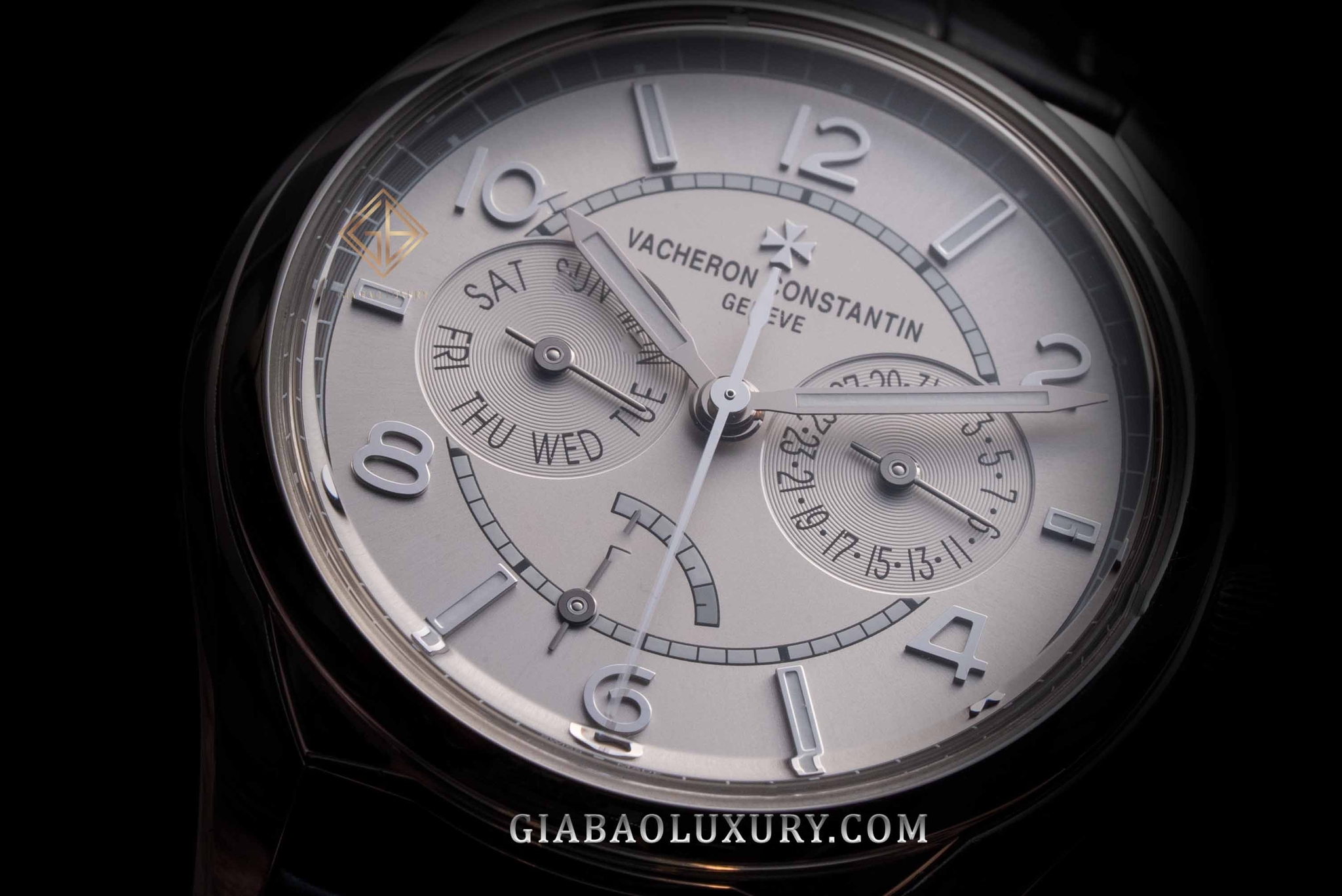Mặt số của chiếc FiftySix Day-Date 4400e/000a-b437 hiện lên với những cọc chỉ giờ đính nổi trong kiểu dáng cọc baton xen kẽ với số dạng Ả Rập kích thước lớn. Bên trong những cọc chỉ giờ này là chất phát quang màu trắng, không hê phá vỡ cảm giác đơn sắc mà tổng thể thiết kế hiện tại mang lại. Cũng thể hiện một cách cổ điển, chức năng chỉ báo ngày trong tháng và thứ trong tuần được Vacheron Constantin phân bổ thành hai mặt số phụ nằm cân đối tại góc 3 và 9 giờ. Hai mặt số phụ này được xử lý với những vân tròn đồng tâm do đó đôi lúc nó trở nên lấp lánh khác thường.