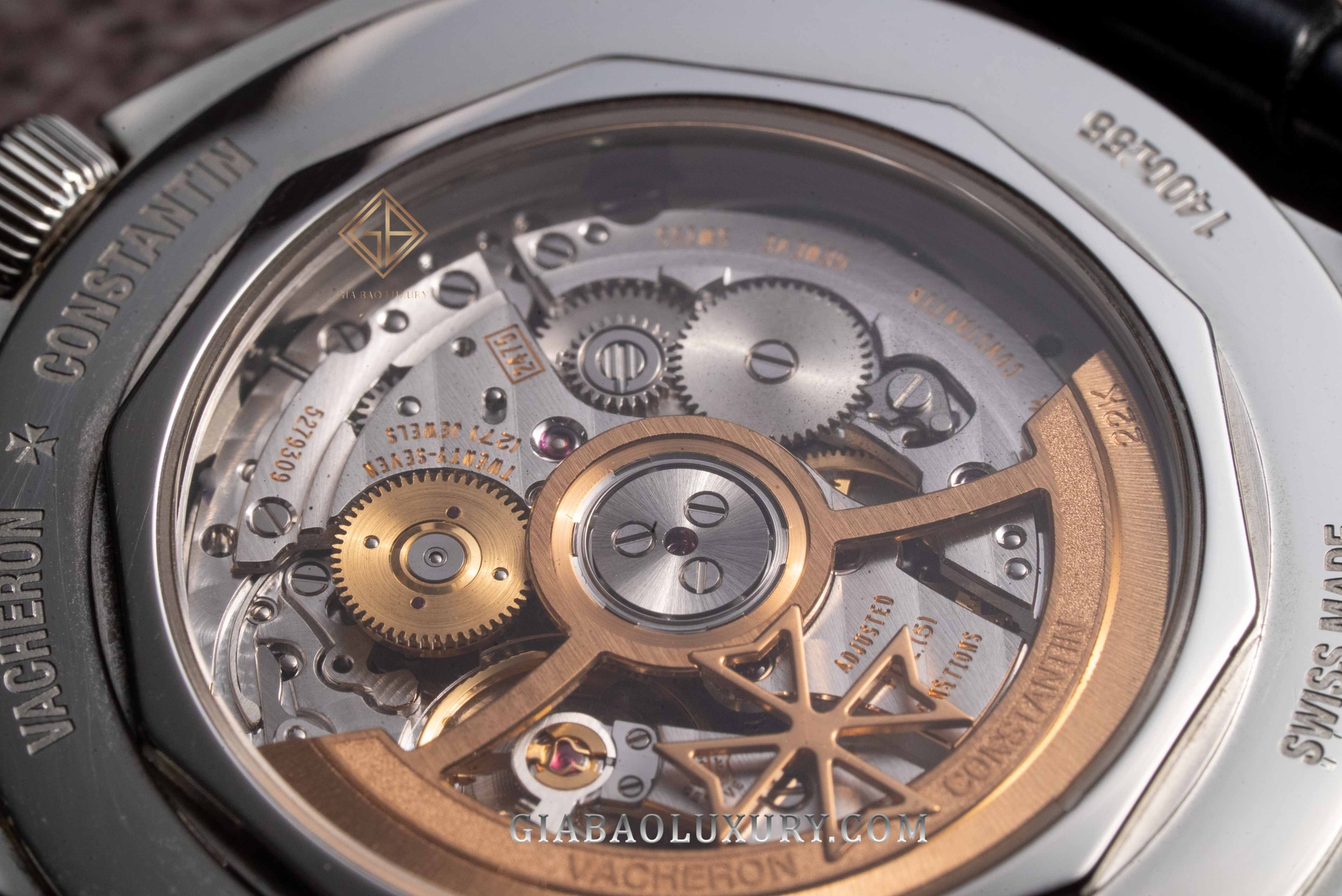 Đằng sau mặt kính sapphire phía đáy đồng hồ, bộ máy Calibre 2475 SC / 2 xuất hiện với những chi tiết được xử lý tỉ mỉ từ những đôi tay lành nghề của thương hiệu top ba tại Thụy Sỹ. Một vài phương pháp hoàn thiện quen thuộc có thể dễ dàng quan sát như là vân sọc Geneve đều thẳng tắp, các cầu nối được đánh bóng, vát cạnh mượt mà, các đầu vít vặn chặt, đều và đẹp,... Thể hiện tâm huyết từ nhà sản xuất Vacheron Constantin, rotor bằng vàng có biểu tượng Chữ thập Maltese hiện lên với bề mặt phun cát, vân thằng và cả đánh bóng. Rõ ràng, chúng ta hoàn toàn có thể nhận định, ngay bản thân rotor chính là một tác phẩm nghệ thuật thu nhỏ từ nhà sản xuất.