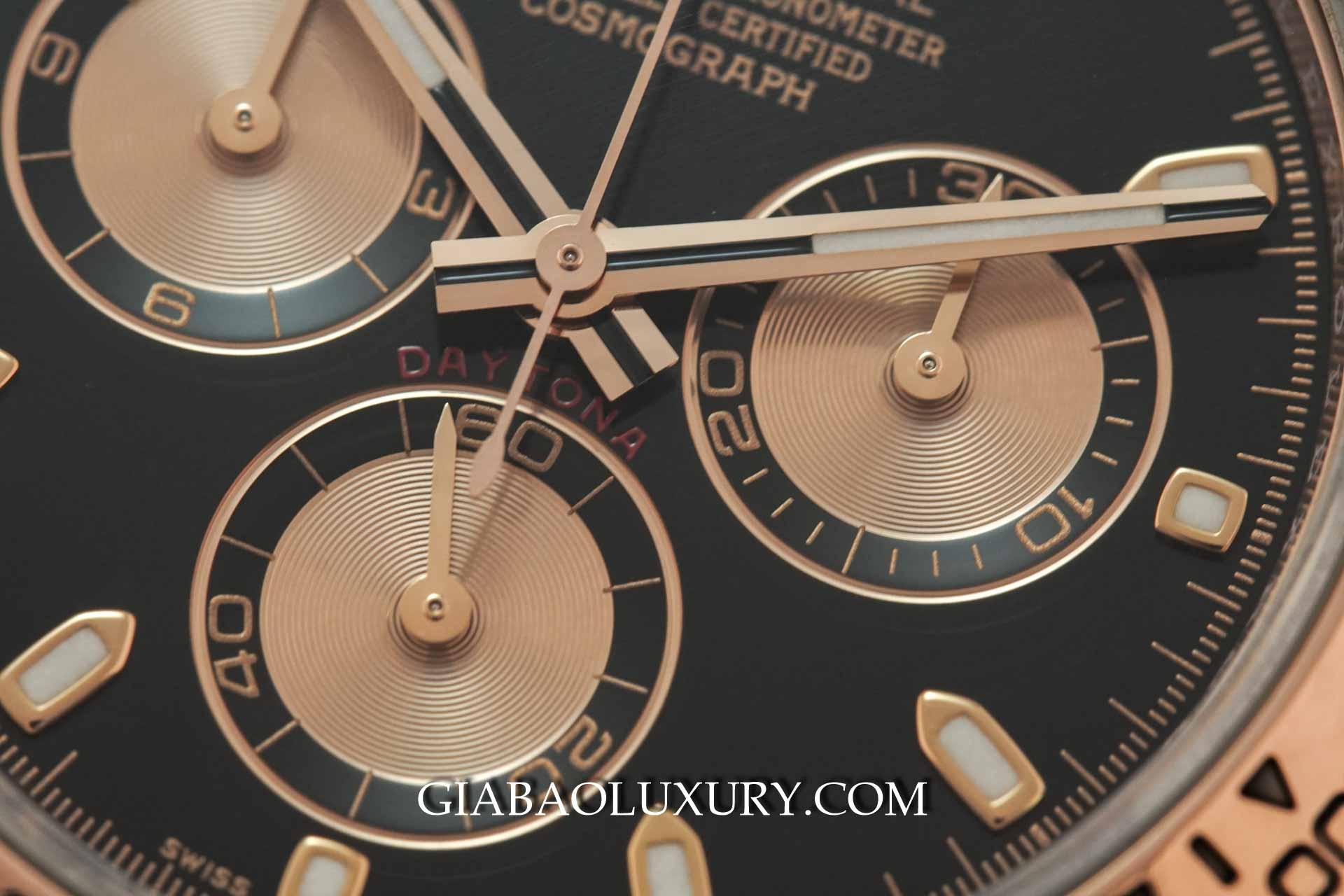 Đi đến phần mặt số, dù là cả hai đều là những cỗ máy chronograph điển hình, nhưng cả hai lại thể hiện phong cách hoàn toàn khác biệt. Với cách sắp xếp 3 mặt số phụ tại góc 3, 6 và 9 giờ, chiếc Daytona hiện lên khá truyền thống và cổ điển cùng với hệ thống cọc chỉ giờ đi kèm chất phát quang, tương tự trên bộ kim chính.