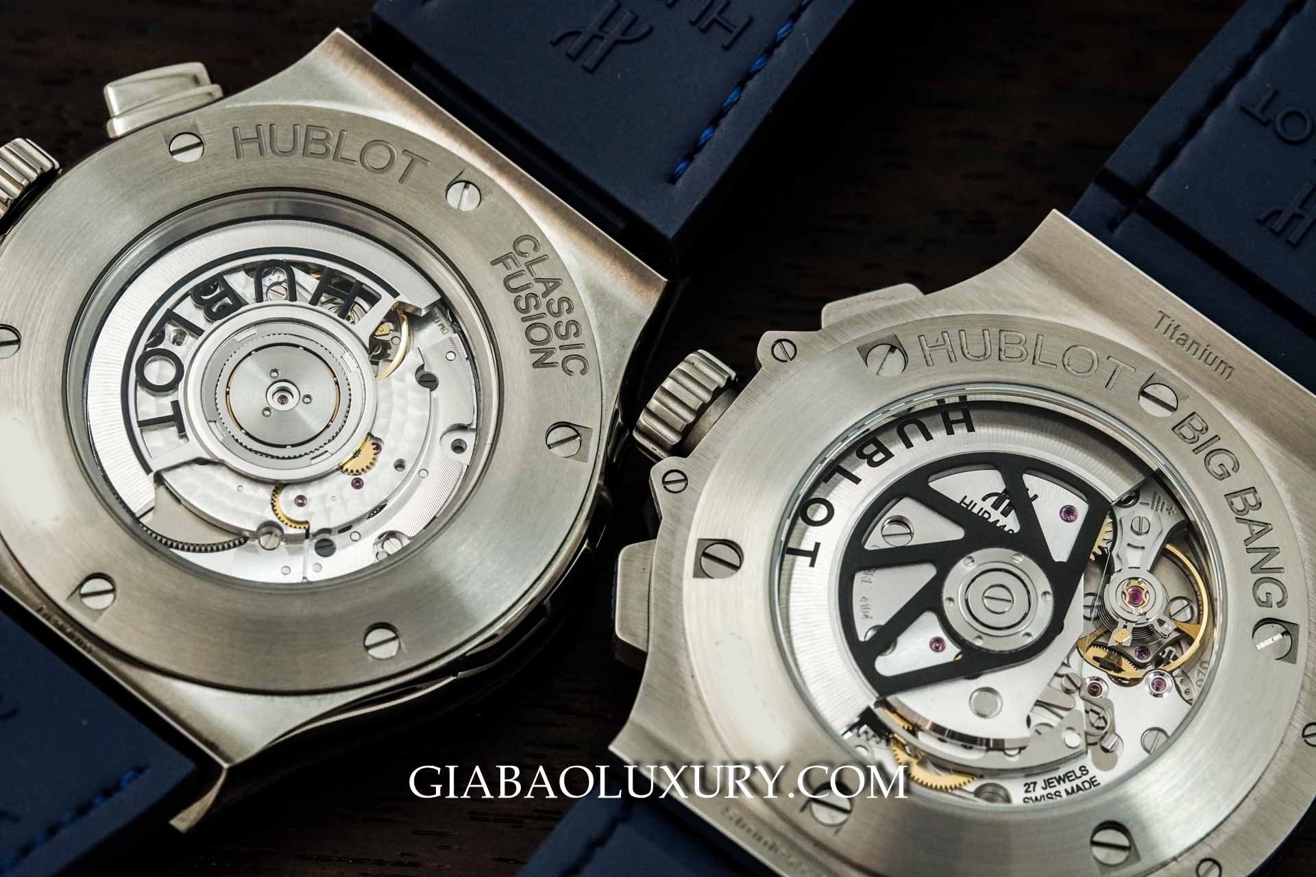 Cả hai đều là bộ máy tự động, có khả năng chung cấp năng lượng cho đồng hồ hoạt động chính xác trong vòng 44 giờ khi được lên cót đầy đủ. Đặc biệt, Hublot đều trang bị cho cả hai mẫu Hublot Big Bang Chronograph ref. 301.SX.7170.LR cũng như Hublot Classic Fusion Chronograph ref. 521.NX.7170.LR lớp kính sapphire chống trầy xước tốt phía nắp lưng, nên việc xem bộ máy bên trong là điều vô cùng dễ dàng.