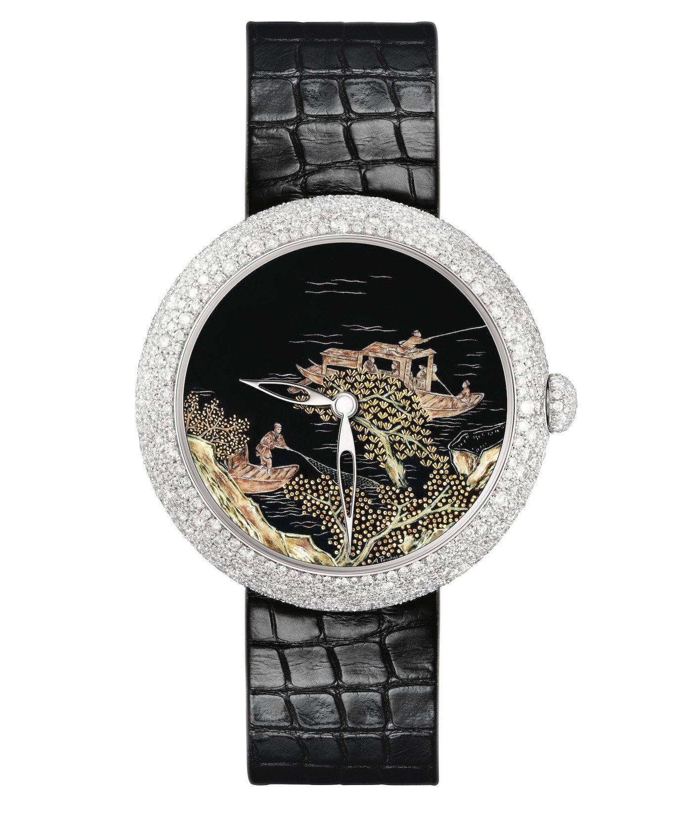 Có vô số hình dạng - những chiếc lá, những đường cong, những con số, v.v. - mà bây giờ tôi phải sắp xếp. Đôi khi tôi tự nhủ rằng mình hoàn toàn phát điên và điều đó sẽ kéo dài mãi mãi. Tôi có thói quen thức đến nửa đêm nhưng cả một thế giới mới đang hiện ra trước mắt tôi. Tôi đã tạo ra một tác phẩm đặc biệt dành cho triển lãm Patek Philippe ở Nhật Bản có kết hợp với “paillon”. Khi ánh sáng xuyên qua lớp men, các paillon lấp lánh như những viên đá quý.