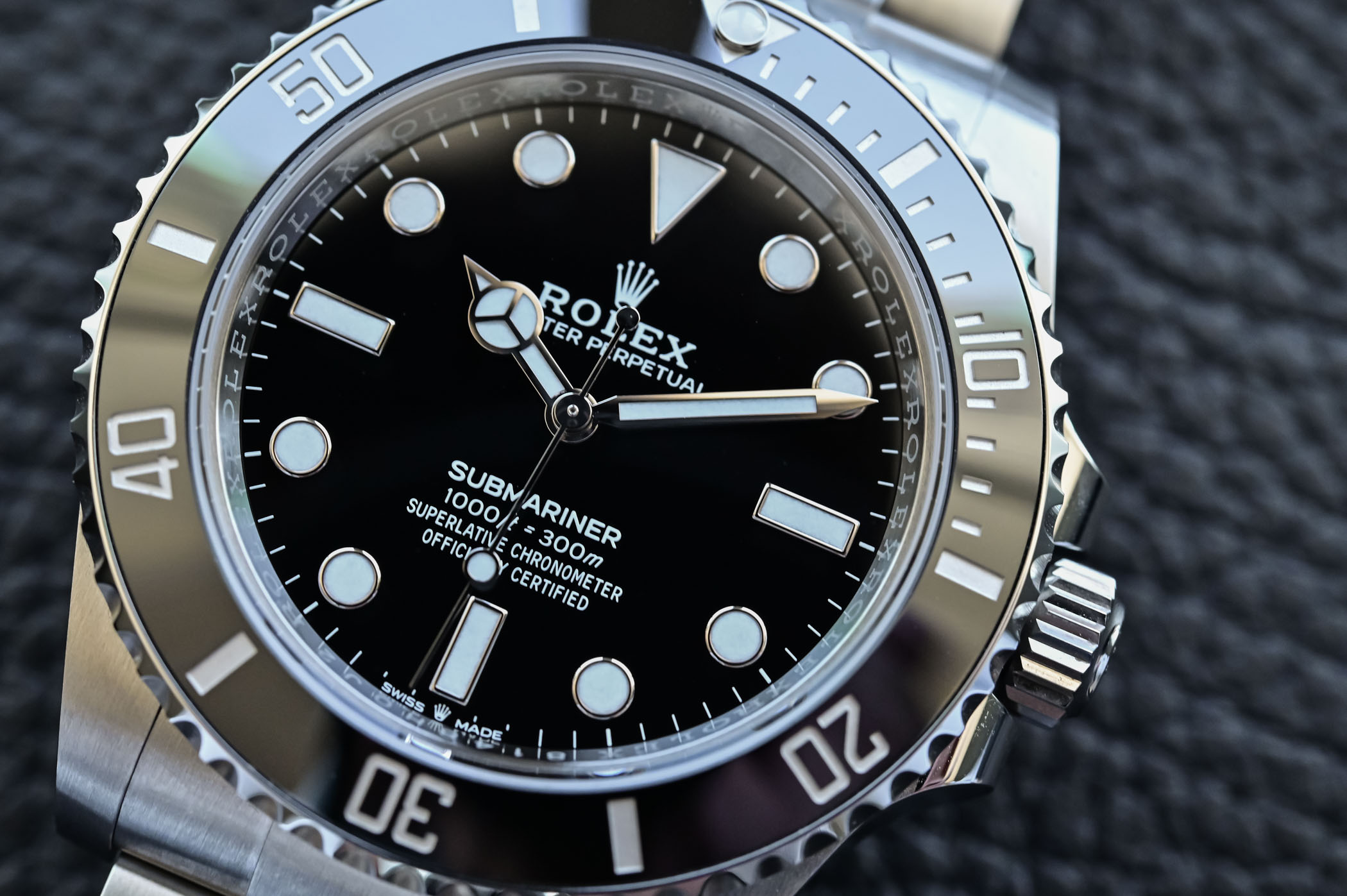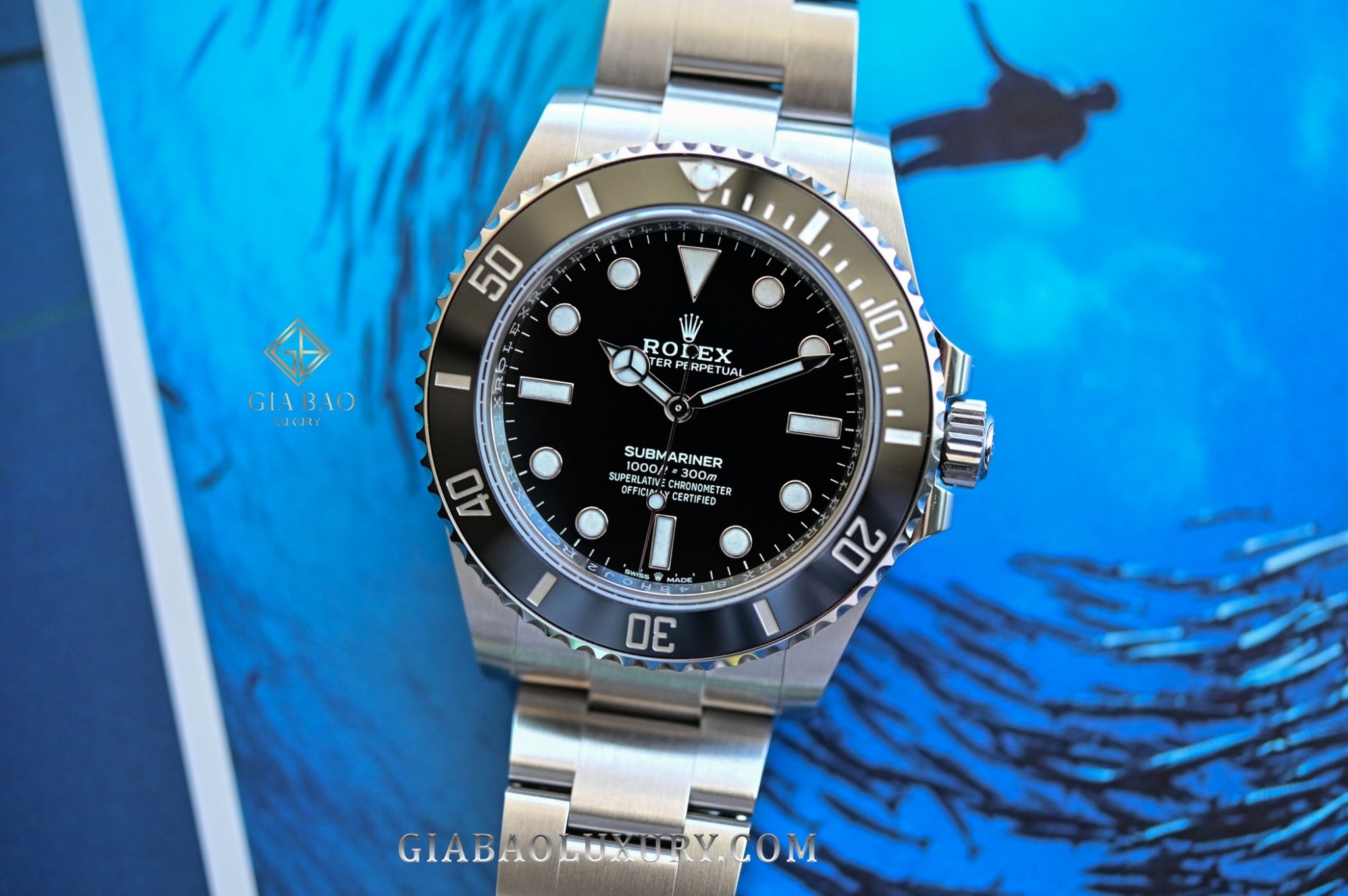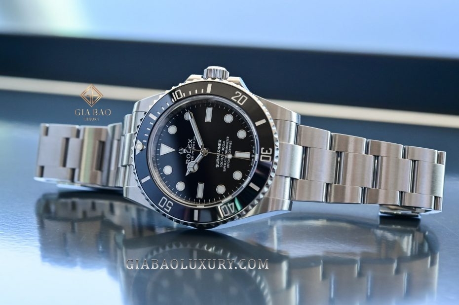- 124060-0001: Submariner No Date, vỏ thép, mặt số đen vành Ceramic đen