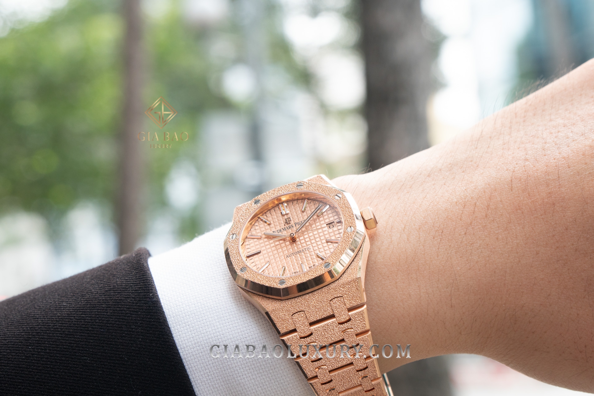 Để giải quyết nhu cầu về những chiếc đồng hồ nạm kín kim cương từ khách hàng, một phần giải pháp mà Audemars Piguet đem đến là giới thiệu đồng hồ có vỏ “frosted gold". Những chiếc đồng hồ có vỏ vàng nhưng lấp lánh như bụi kim cương.