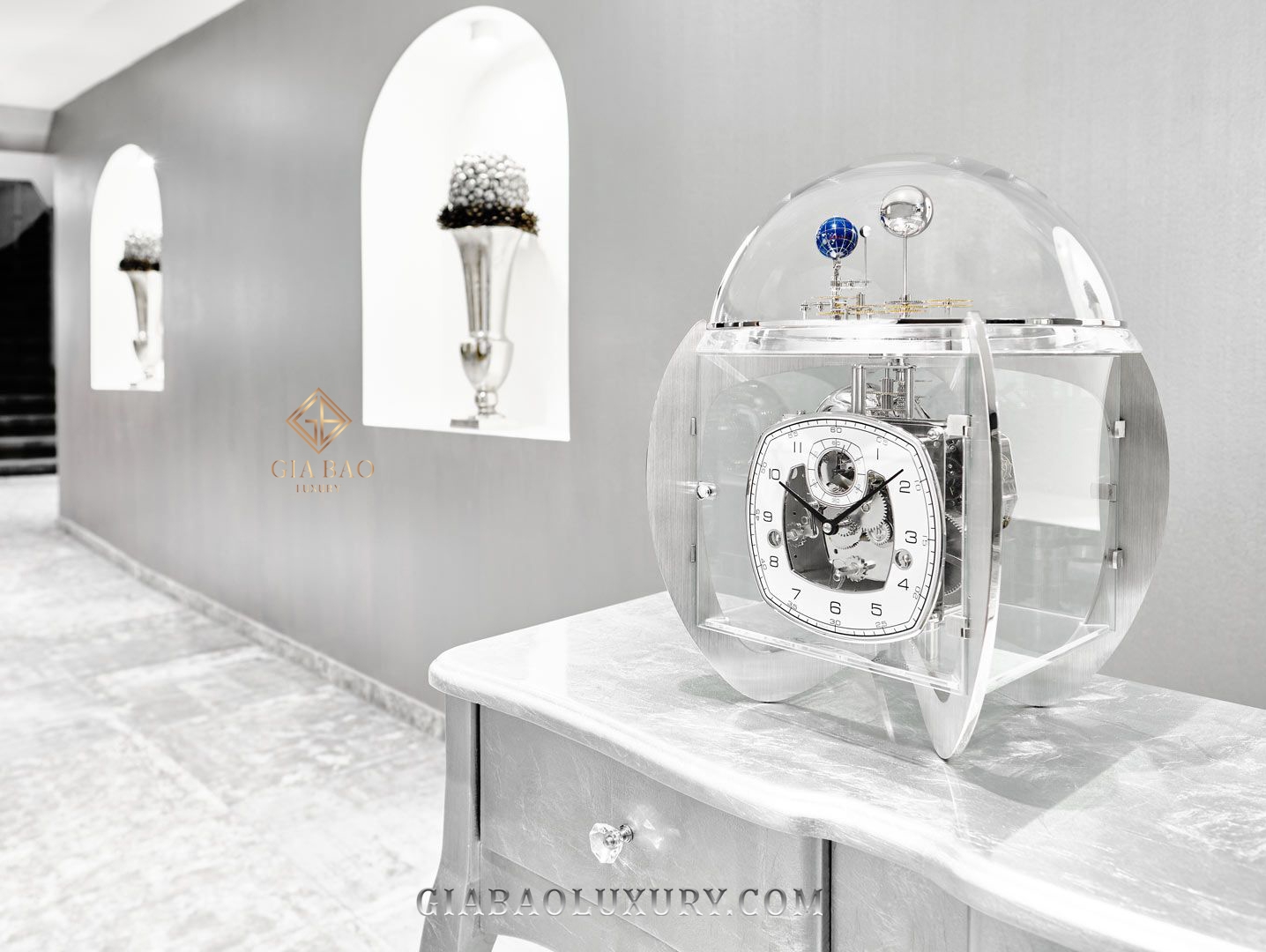 Những chiếc đồng hồ Astronomia nổi tiếng của thương hiệu Jacob & Co đẹp đến mê hồn. Giờ đây, chiếc đồng hồ đeo tay nổi bật ấy đã xuất hiện trong một chiếc đồng hồ để bàn tuyệt đẹp. Ở đó, bộ máy Astronomia với những chuyển động mê đắm được chiêm ngưỡng cận cảnh, từng chi tiết.