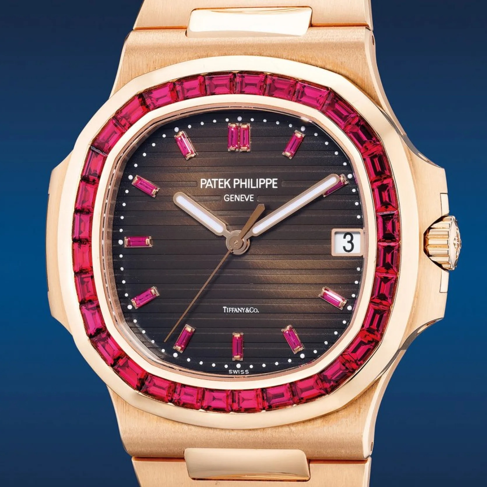 Và giờ đây, công chúng lại chứng kiến một chiếc Patek Philippe Nautilus 5723 có chữ ký Tiffany & Co. đi kèm vành bezel gắn đá ruby hồng được bán với giá 1,45 triệu USD tại khách sạn JW Marriott, Hong Kong. Con số này xác lập kỷ lục về chiếc Nautilus có giá cao thứ 2 kiêm kỷ lục về chiếc Nautilus bằng vàng có giá cao nhất.