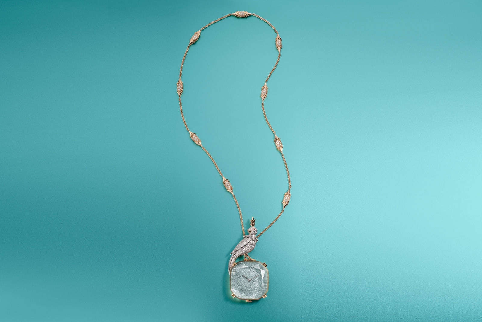 Nếu đã biết đến tên tuổi của nhà kim hoàn nổi tiếng từ Mỹ, bạn sẽ không cảm thấy xa lạ với chiếc trâm cài áo có tên “Bird on a Rock”. Cô nàng Rosé đã từng xuất hiện trong Tạp chí Harper’s Bazaar Hàn Quốc với chiếc cài áo Bird on a Rock có gắn đá morganite hồng quý giá. Còn với tư cách là một chiếc dây chuyền, thương hiệu Tiffany & Co. đã biến hoá vài chi tiết cho phù hợp. Chú chim xinh đẹp đậu lên phía trên của bộ vỏ vàng hồng 18k của chiếc đồng hồ. Đó sự khéo léo của Tiffany & Co. khi kết hợp kỹ nghệ kim hoàn và nghệ thuật cơ khí đếm thời gian.