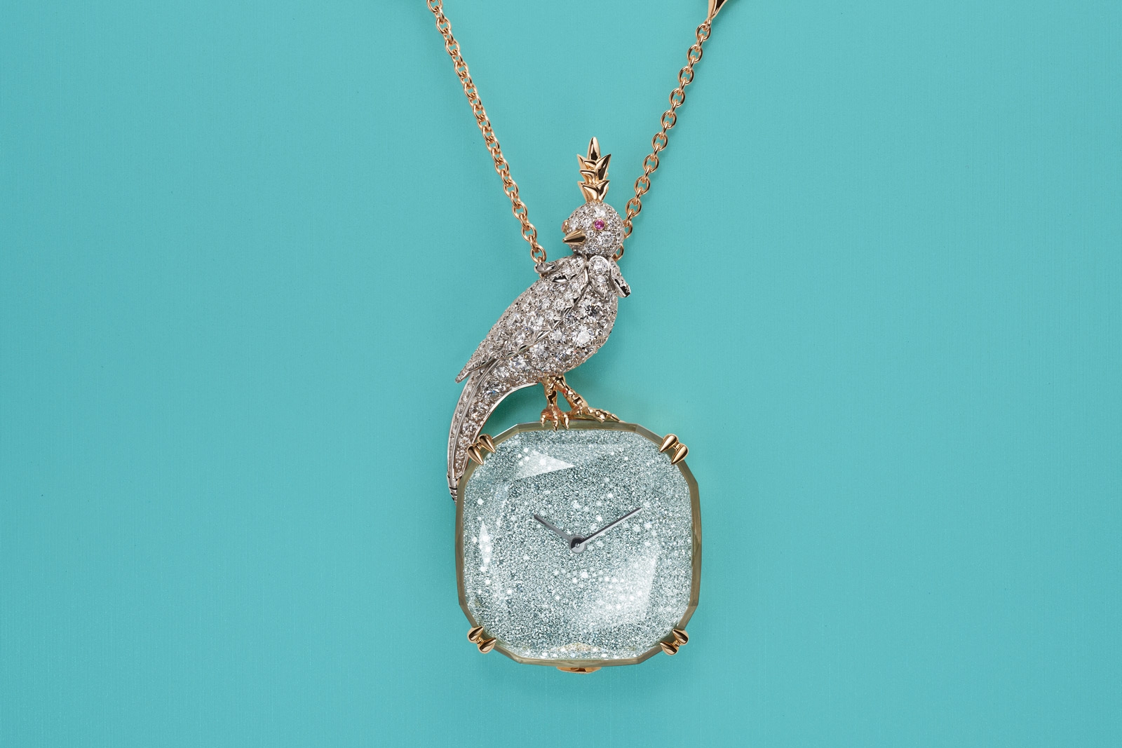 Trong khi đó, sáng tạo đặc biệt của Tiffany lấy cảm hứng từ một trong những món đồ trang sức nổi tiếng nhất của hãng, chiếc trâm cài áo “Bird on a Rock” được thiết kế bởi Jean Schlumberger, một người Pháp, nhà thiết kế trang sức lâu năm của hãng. Được giới thiệu vào năm 1965, phiên bản gốc được tạo thành từ một chú chim nạm đá quý đậu trên đỉnh một viên pha lê một cách duyên dáng. Điều đó đã được diễn giải lại cho Only Watch với một bộ máy cơ học đặt trong một “tảng đá”.