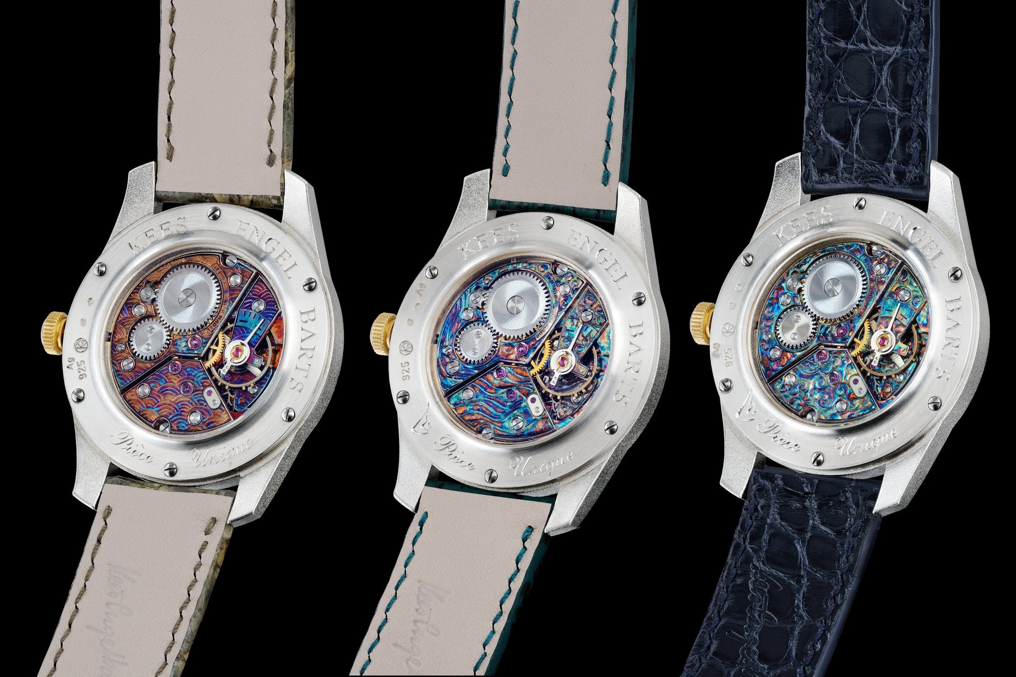 Đồng hồ có mặt số và vỏ được chạm khắc bằng tay của Peter Speake-Marin. Kees đã làm khá nhiều nguyên mẫu cho Peter.