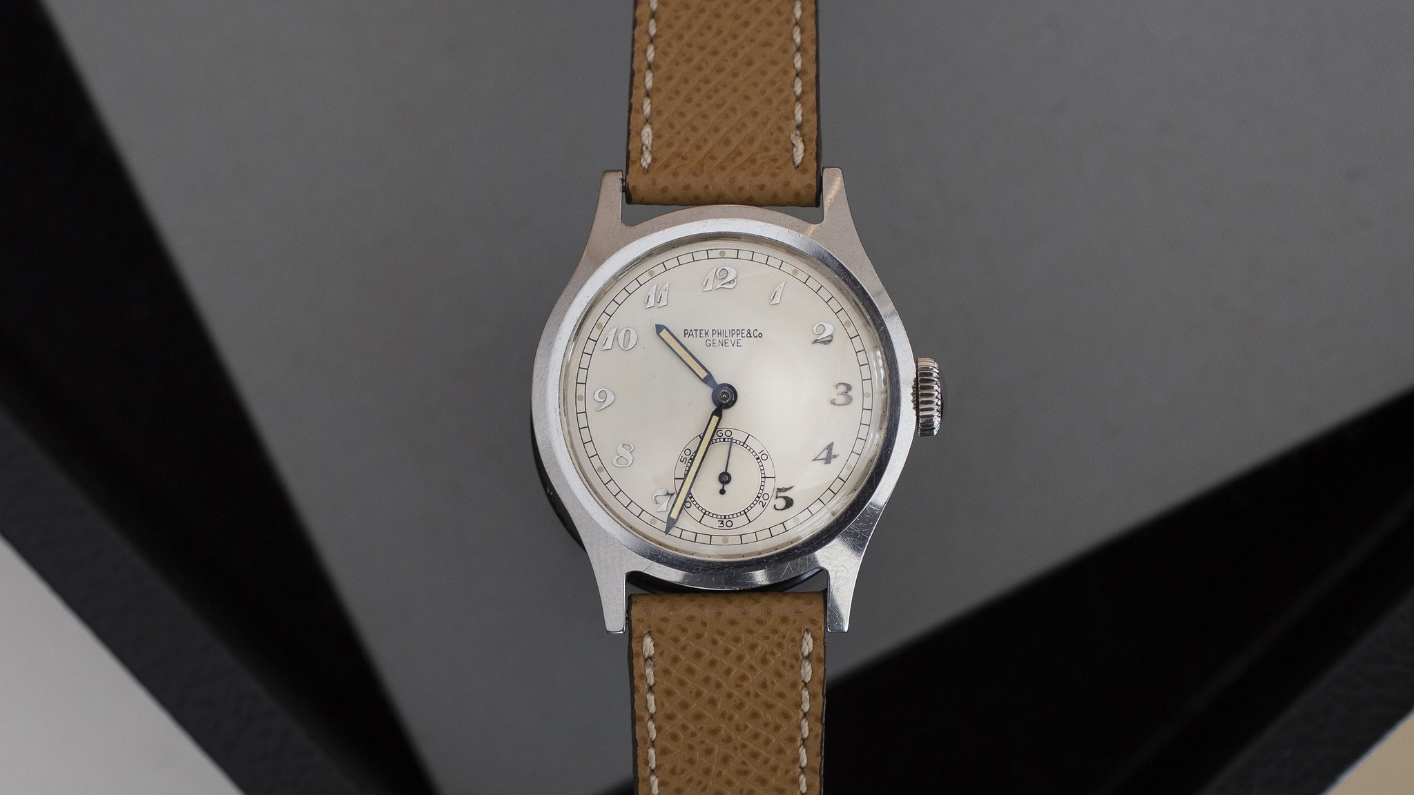 Patek Philippe 565. thép không gỉ, cọc số Breguet (sản xuất khoảng năm 1944)