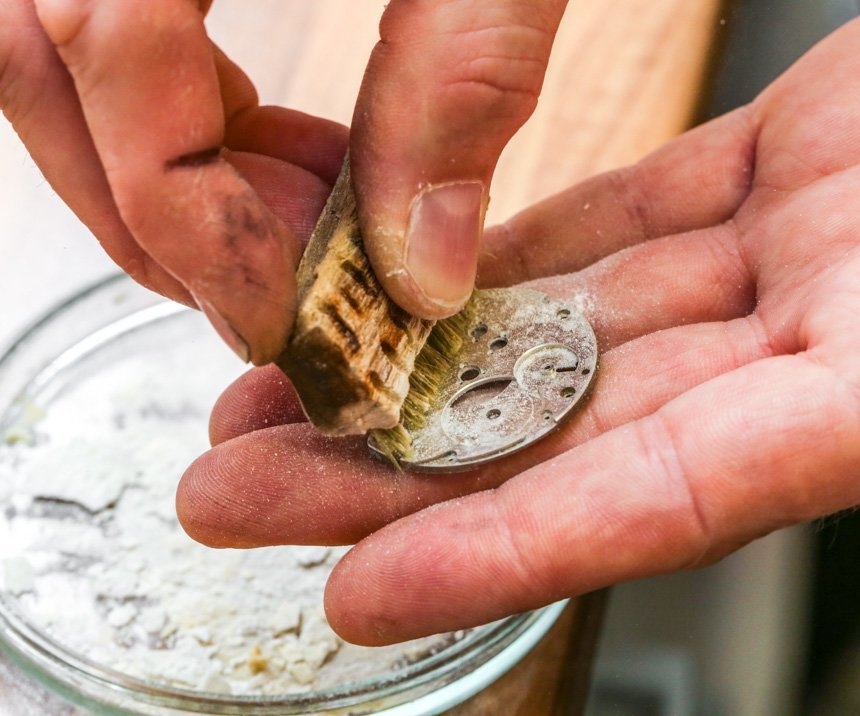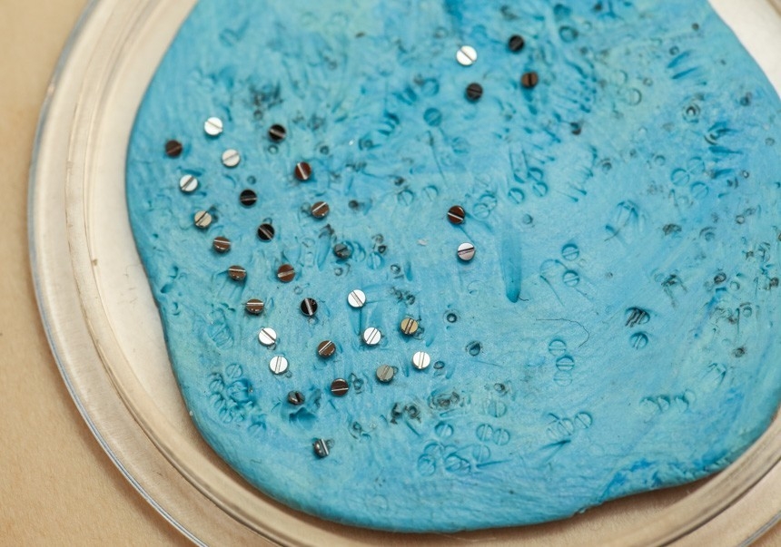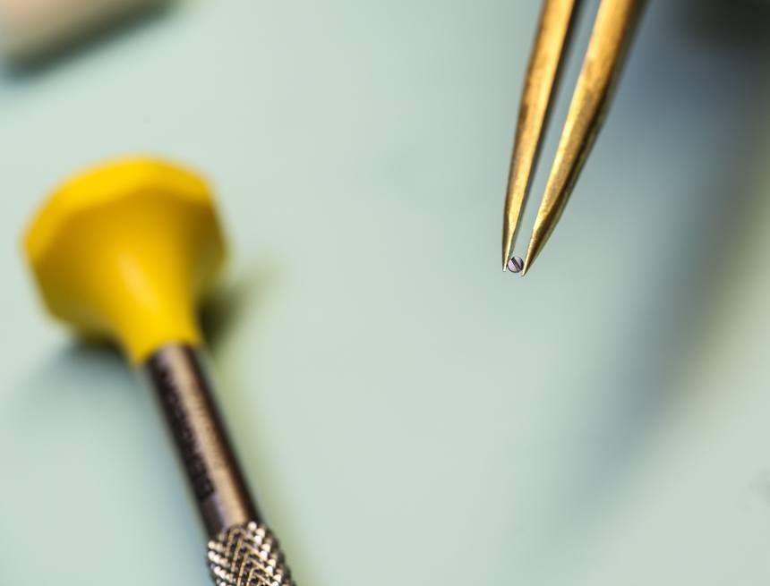 Mất một đến hai giờ chỉ để đánh bóng và “nhuộm màu" cho ốc vít, một quãng thời gian khá dài, điều mà không phải tất cả những người yêu đồng hồ đều biết. Phần lớn chỉ nhìn thấy thành phẩm, mà không biết rằng, những đinh vít là kết quả của quá trình sản xuất kéo dài bao lâu, cần tới kỹ năng đặc biệt nào.