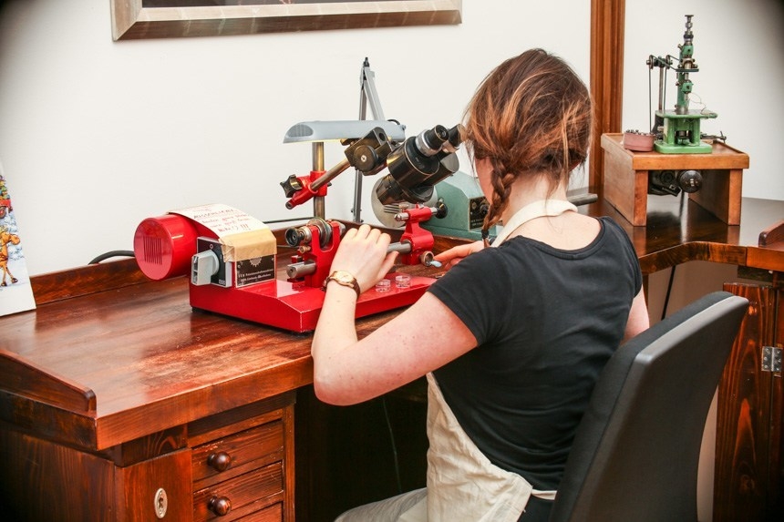Một giờ là thời gian mà người thợ lành nghề cần để đánh bóng bề mặt vít. Những bộ phận cực kỳ nhỏ này bắt đầu từ những miếng hợp kim bằng thép được đặt hàng đặc biệt, sau đó chuyển đến máy CNC để cắt ra hình dạng thô cơ bản. Chi phí vật liệu cho mỗi con vít chưa hoàn thiện tại Lang & Heyne là khoảng 1 euro. Trên thực tế, các linh kiện này được sản xuất tại UWD - hiện cũng đang đóng vai trò là "công ty chị em" của Lang & Heyne. Các vít một euro sau đó sẽ biến đổi sau khi trải qua công đoạn kiểm soát chất lượng đầu vào rồi chuyển đi đánh bóng. Thực tế, Lang & Heyne tự sản xuất vít ở vài kích cỡ và một số trong số chúng sau đó nung nhiệt để tạo màu xanh.