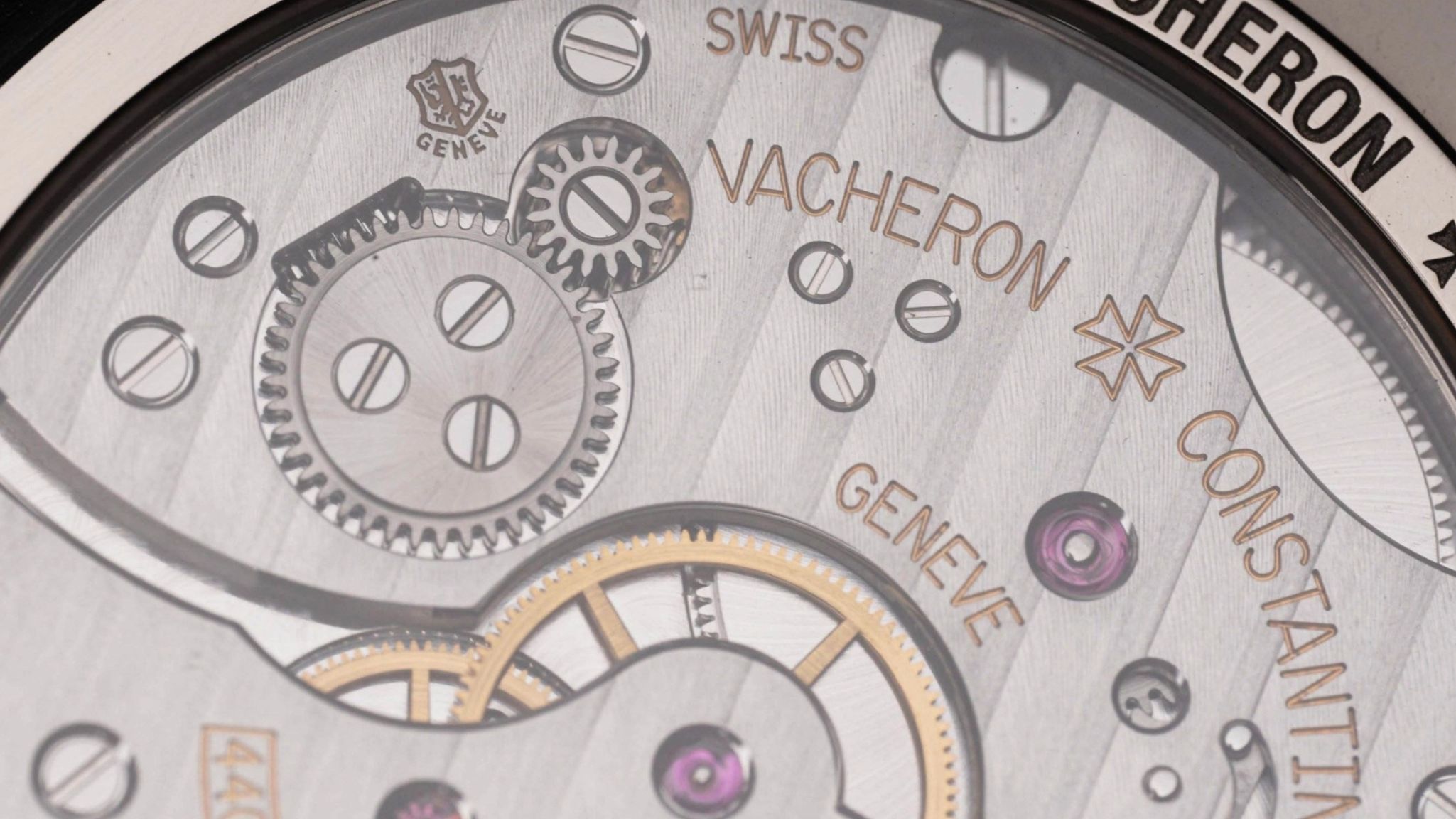 Bên trong lớp vỏ thép 40mm là một trong những “trái tim” quan trọng của Vacheron Constantin: bộ máy calibre 4400 QC. Chữ “QC” hàm ý bổ sung module lịch (Quantième Complet – chỉ báo lịch đầy đủ), được phát triển dựa trên nền tảng calibre 4400 “in-house” lừng danh. Đây là máy lên cót thủ công, có 21 chân kính, hoạt động ở tần số 28.800 vph (4 Hz), và cung cấp mức dự trữ năng lượng lên tới 65 giờ. Điểm đáng chú ý là sự ổn định và tương đối mỏng của nền máy, yếu tố quan trọng giúp đồng hồ duy trì bề dày chỉ hơn 10mm dù chứa nhiều cơ cấu hiển thị.