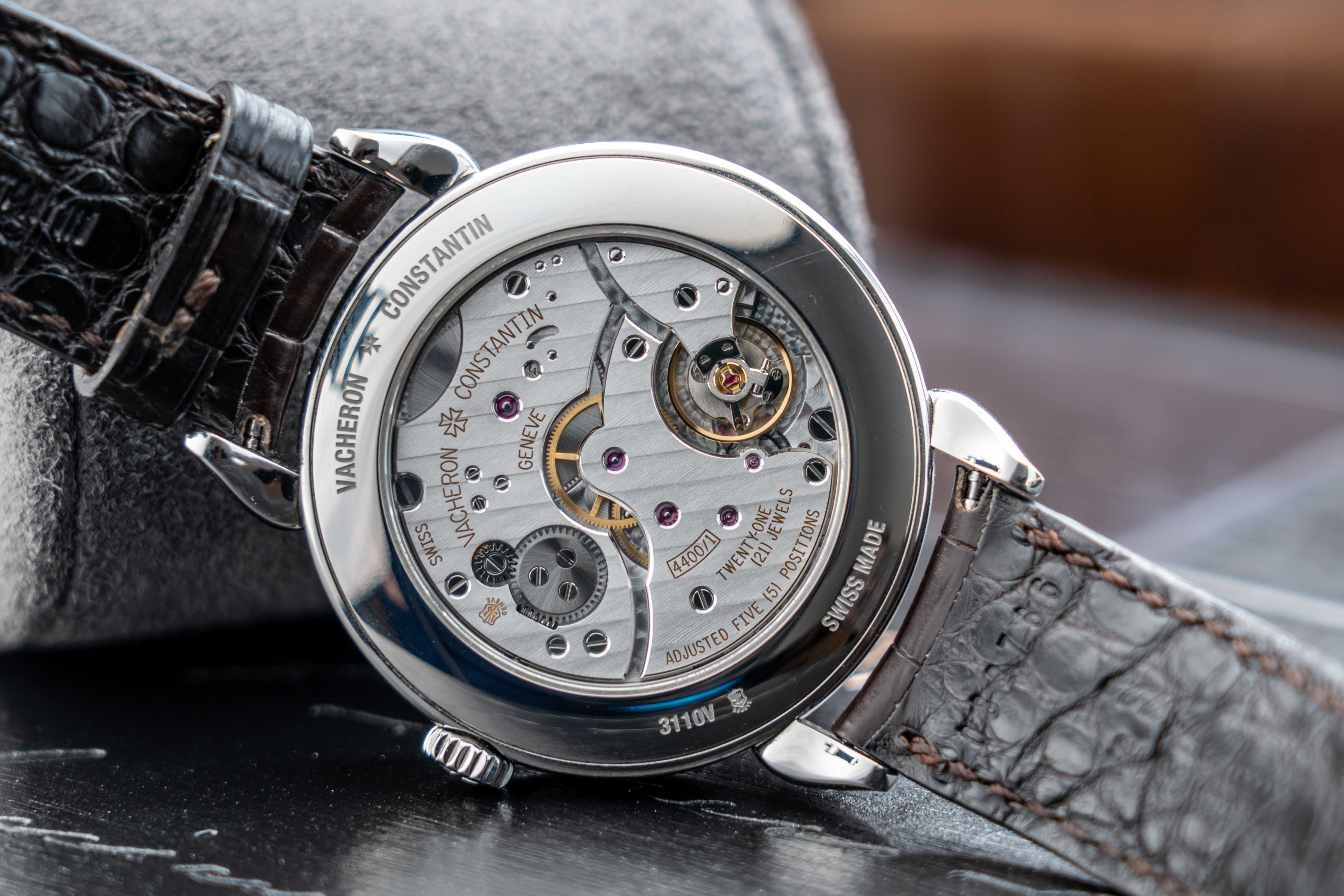Mặt sau lắp kính sapphire trong suốt, cho phép chiêm ngưỡng khung cảnh của cầu máy, vát cạnh và sọc Geneva (Côtes de Genève) chạy dọc vô cùng sắc nét. Theo tiêu chuẩn Hallmark of Geneva (nếu phiên bản này được chứng nhận), tất cả công đoạn hoàn thiện phải tuân thủ quy trình nghiêm ngặt, từ cách đánh bóng ốc vít, các góc cạnh đến họa tiết khắc chữ trên rotor (hoặc cầu chính).
