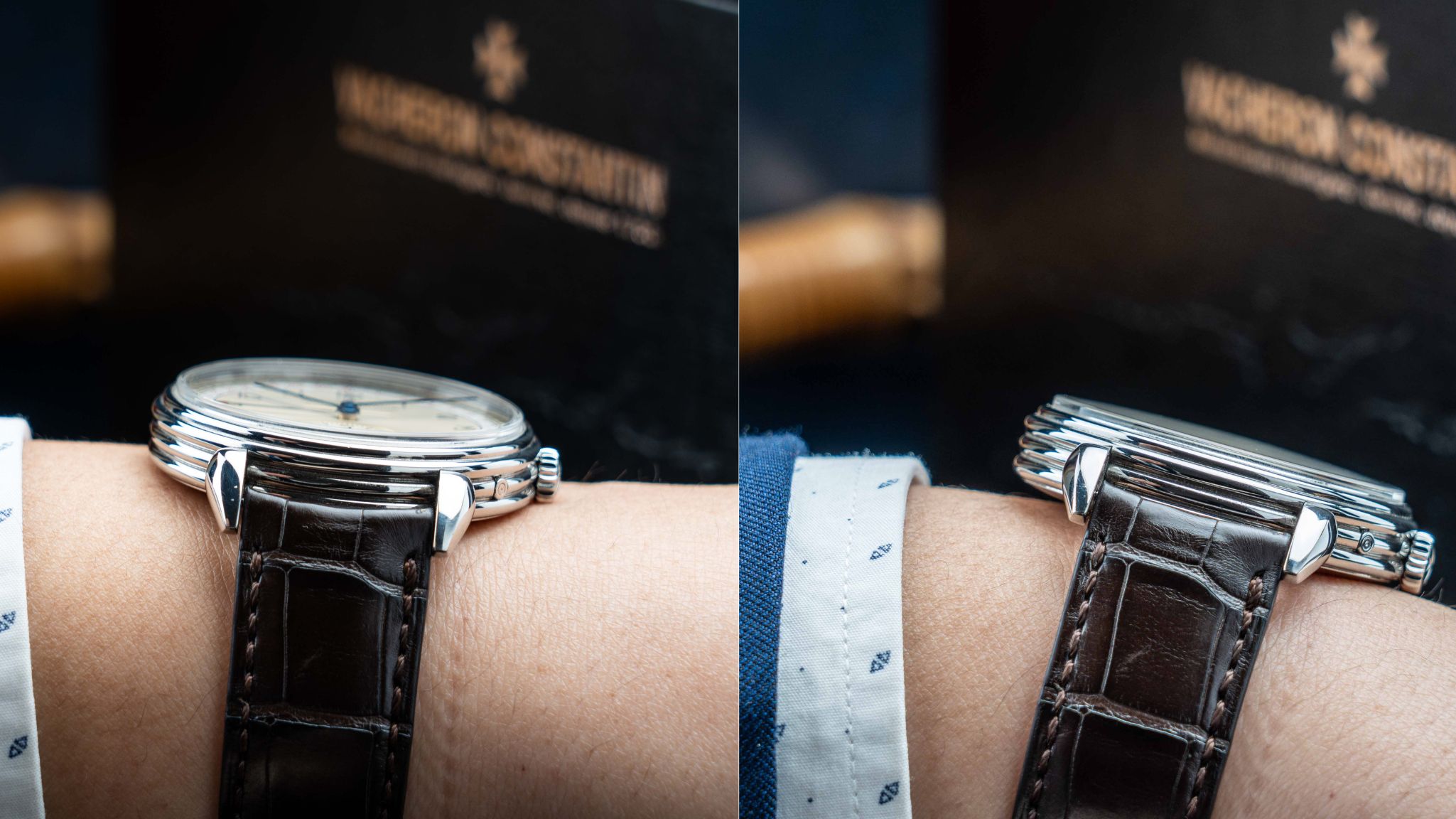 Với chức năng lịch ba (ngày, thứ, tháng) và kim pointer date, chiếc đồng hồ cung cấp đủ thông tin thiết yếu trong cuộc sống thường ngày. Thao tác điều chỉnh ngày, tháng, thứ qua các nút chỉnh bên cạnh vỏ khá thuận tiện. Cách bố trí này tối ưu về mặt thị giác, tránh để quá nhiều cửa sổ chen chúc trên mặt số, vốn có thể gây rối mắt. Đặc trưng Triple Calendar cũng là một nét riêng biệt: không đồ sộ như Lịch Vạn Niên (Perpetual Calendar), cũng không tối giản như các mẫu chỉ có ngày. Nó gợi nét hoài cổ, nhắc người đeo nhớ đến thời đại mà việc xem ngày, thứ, tháng ngay trên cổ tay là một “tiêu chuẩn sang trọng.”