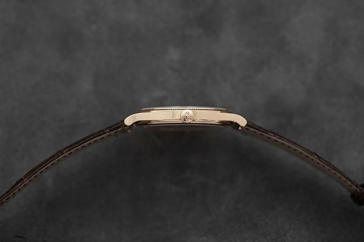 Bên cạnh đó là các cọc chỉ giờ bằng vàng đính nổi, kim dauphine nhẵn bóng và chữ thập Maltese bằng vàng được đính ngay phía trên chữ Vacheron Constantin Geneva trông rất đẹp.