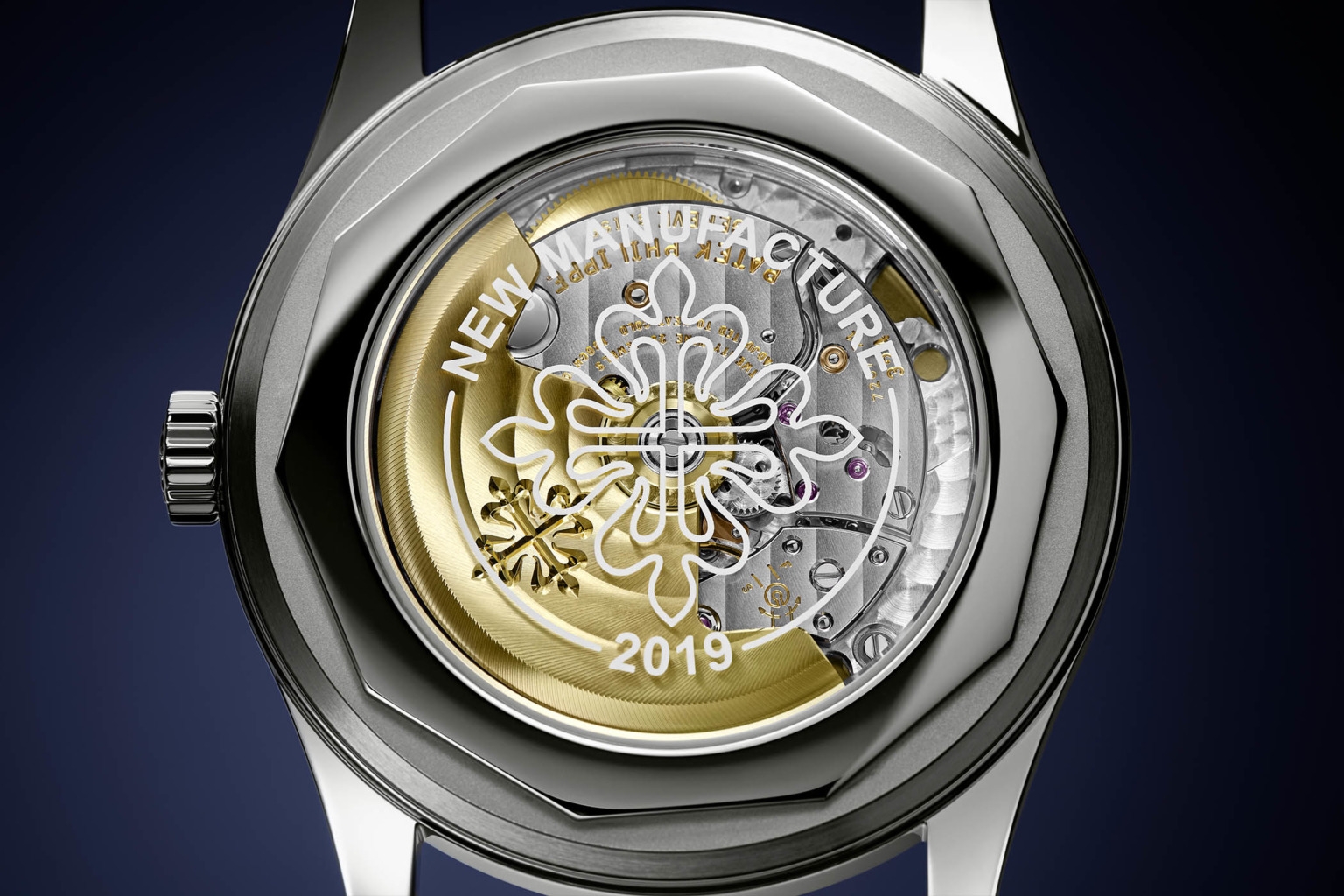 Bộ máy Patek Caliber Caliber 324 S C có thể được quan sát ở mặt sau chiếc đồng hồ Calatrava 6007A. Tuy nhiên cảnh quan đã bị che lấp một phần bởi dòng chữ in bên trong mặt số “NEW MANUFACTURE 2019” cùng dấu hoa thị Calatrava khổng lồ.